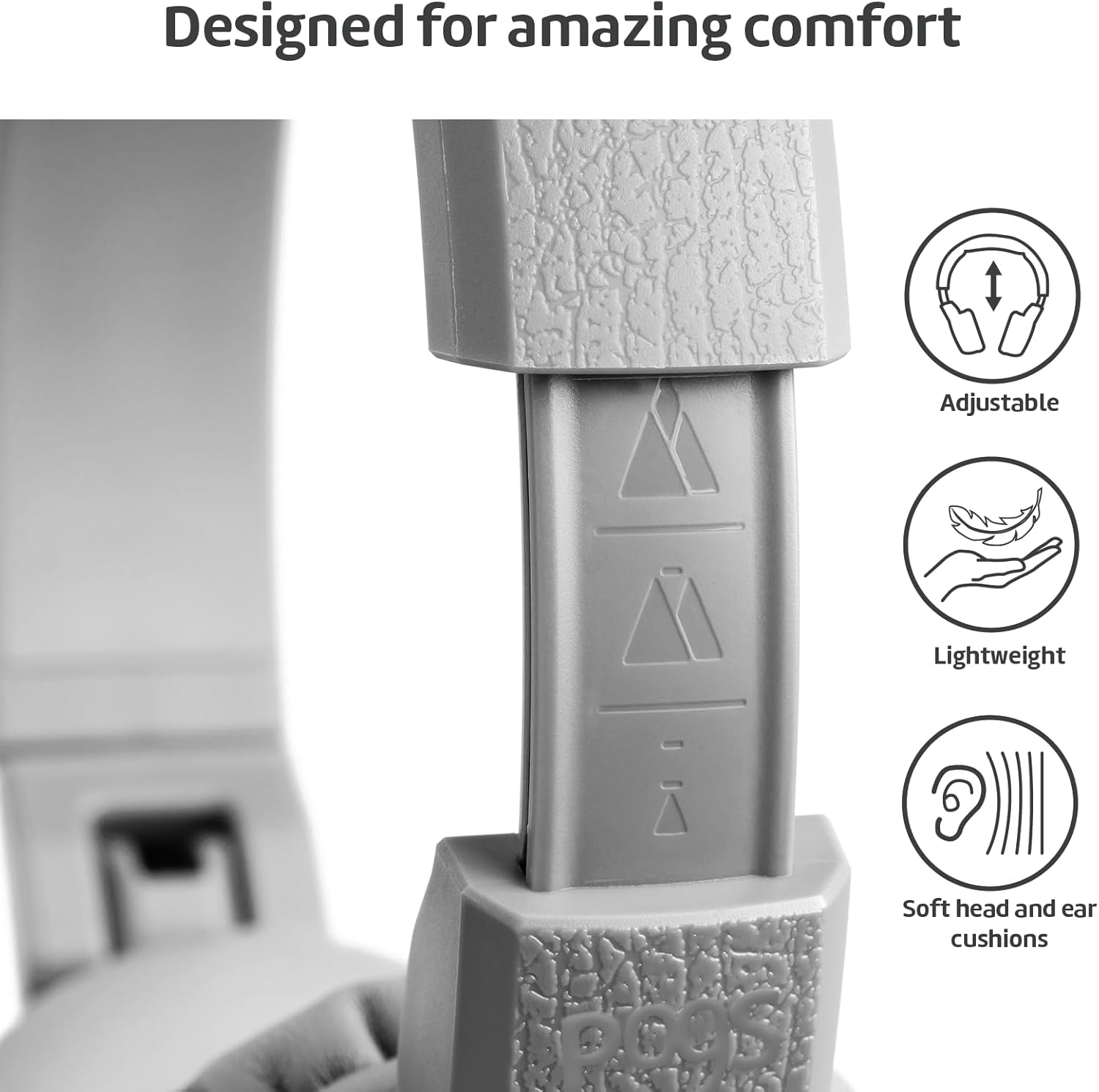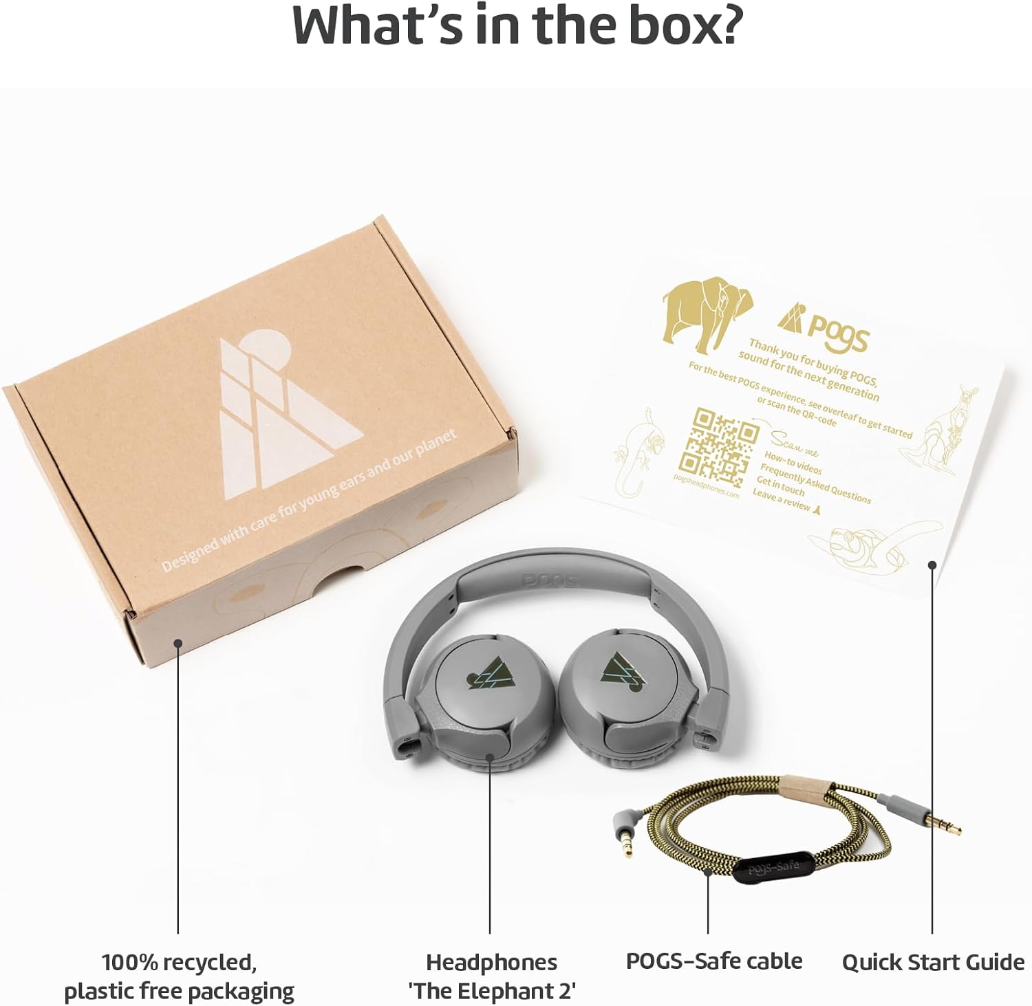 POGS Kids Wired Headphones | The Elephant 2 | Adjustable, Durable Headphones for Kids 3+ | Limited to 85 dB, Microphone | On-Ear | Music-Sharing Function Safe 3.5mm Audio Cable (3.2ft) (rGrey)