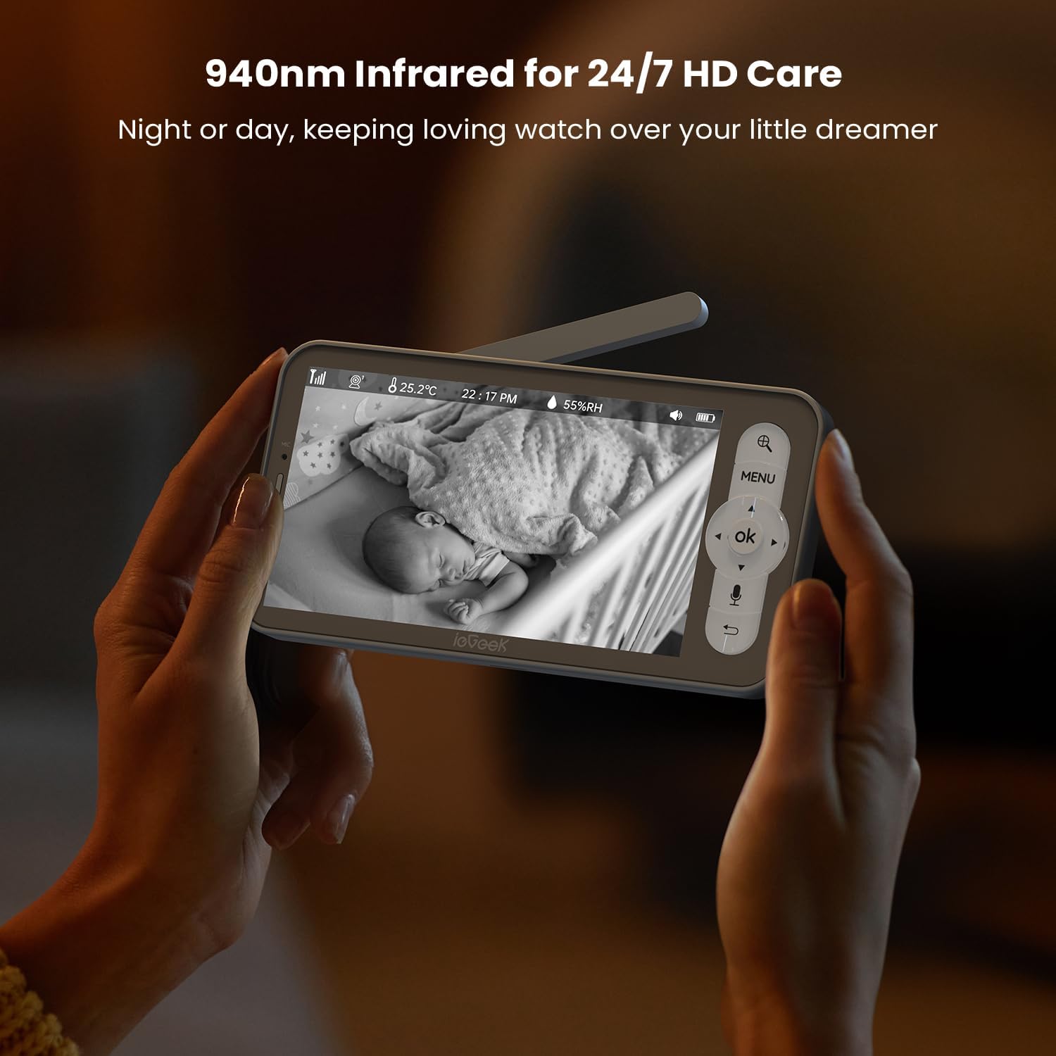 ieGeek Baby Monitor with 2K Camera and Audio - Video Monitor with 5" Screen - Night Vision, Two-Way Talk, Cry & Motion Detection, Temper& Humidity Sensor, PTZ, Remote Control via Screen and Free APP