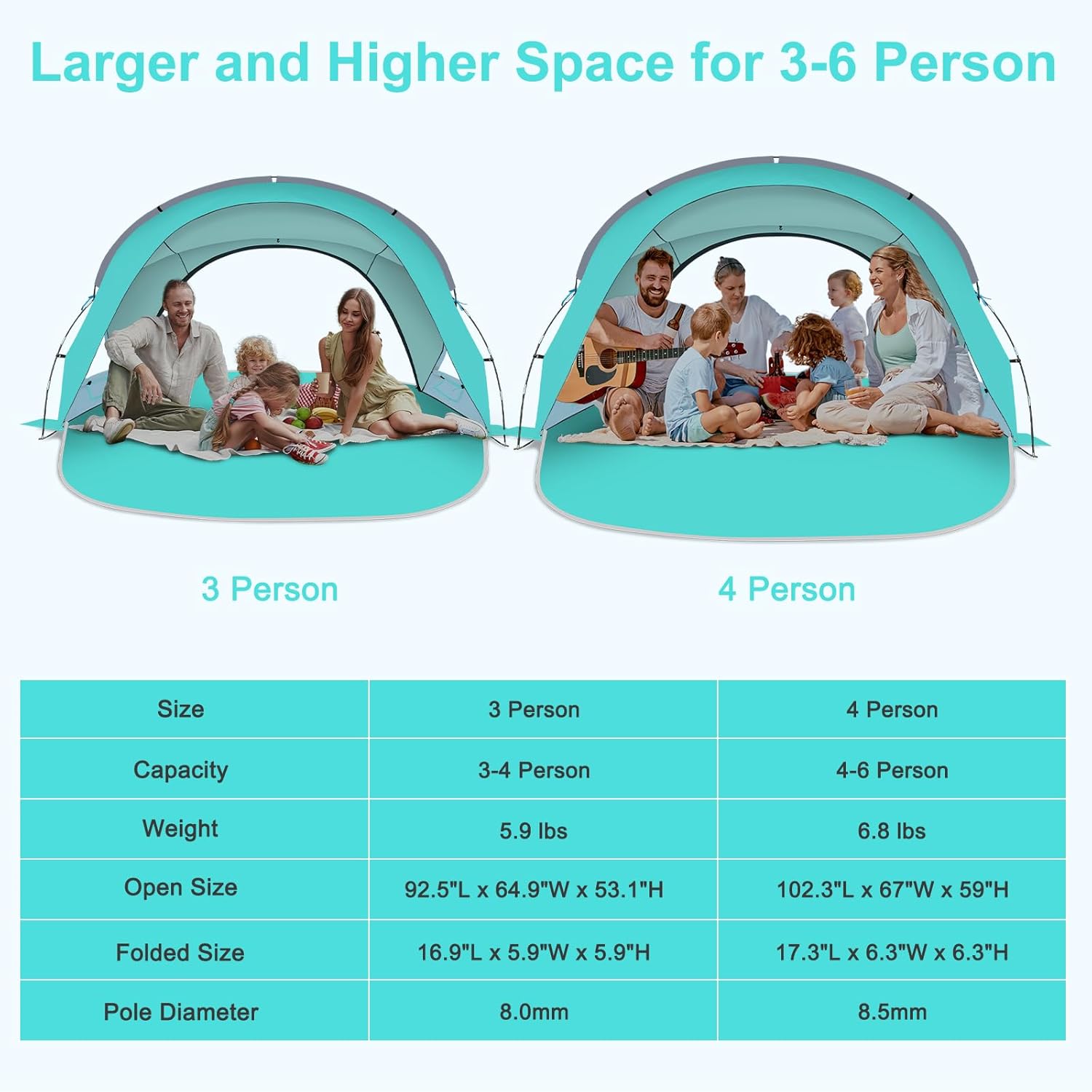 Gorich Beach Tent Sun Shelter with UPF50+ UV Protection for 3/4-5/6-7 Person, Lightweight & Portable Beach Shade Canopy with 2 Zippered Doors, Easy Setup Family Beach Umbrella