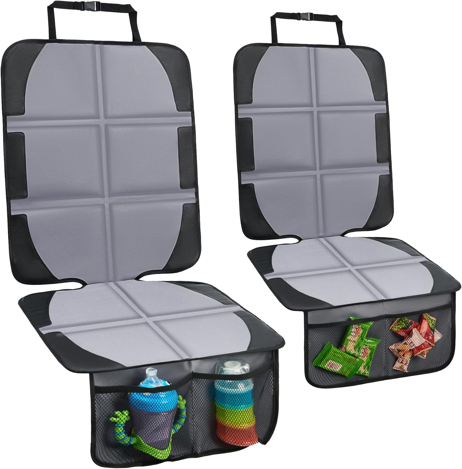 Car Seat Protector, 2 Pack Baby CarSeat Covers with Mesh Pockets & Non-Slip Backing 600D Durable Seat Protectors Under Car Seat for Baby(Gray, Large)