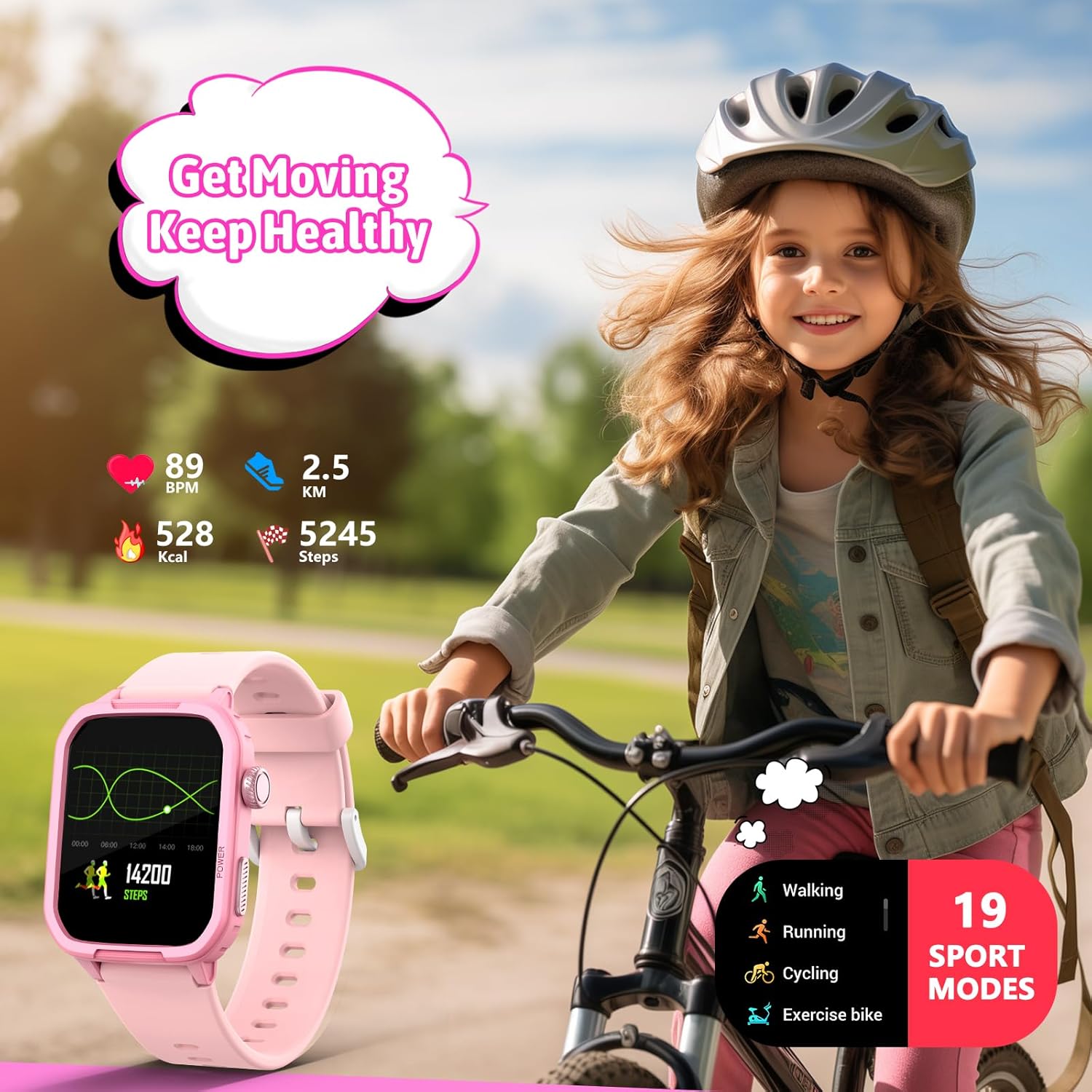 - Waterproof Activity Tracker: JOYELE smart watch for kids boys girls supports 19 sports modes including running, cycling, ball games, etc. The kids watch can measure heart rate, steps, calories and exercise distance. Because the watch is waterproof, you don’t worry about daily hand washing or sweating during exercise.