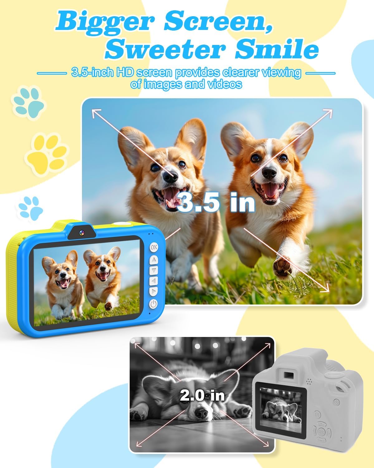- 🖥️ BRIGHT 3.5 INCH SCREEN & 10X DIGITAL ZOOM – Large display helps kids preview and review shots clearly; 10X zoom with rotating lens lets them get closer to the action while maintaining image clarity
