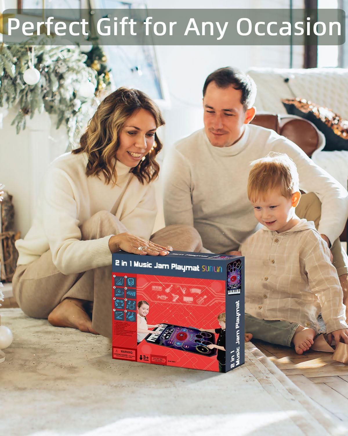 SUNLIN 2-in-1 Music Jam Mat, Music Learning Toy for Boys Girls 3-6, Drum Set + Piano Mat, Toddler Birthday Gift 3 4 5 6 Years, Record & Playback, Built-in Songs, 8 Instrument Sounds, Volume Control
