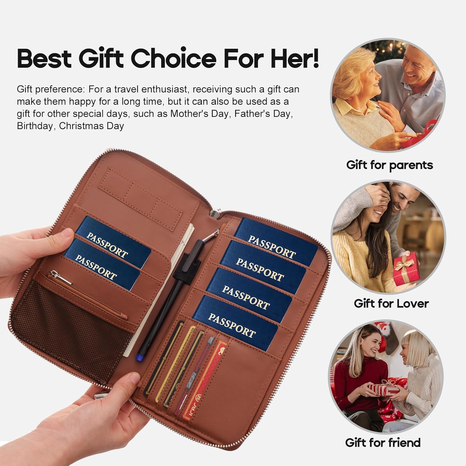 RFID Blocking Family Passport Holder Wallet 6,Premium Leather Travel Document Organizer for Women and Men,Travel Wallet for Credit Card