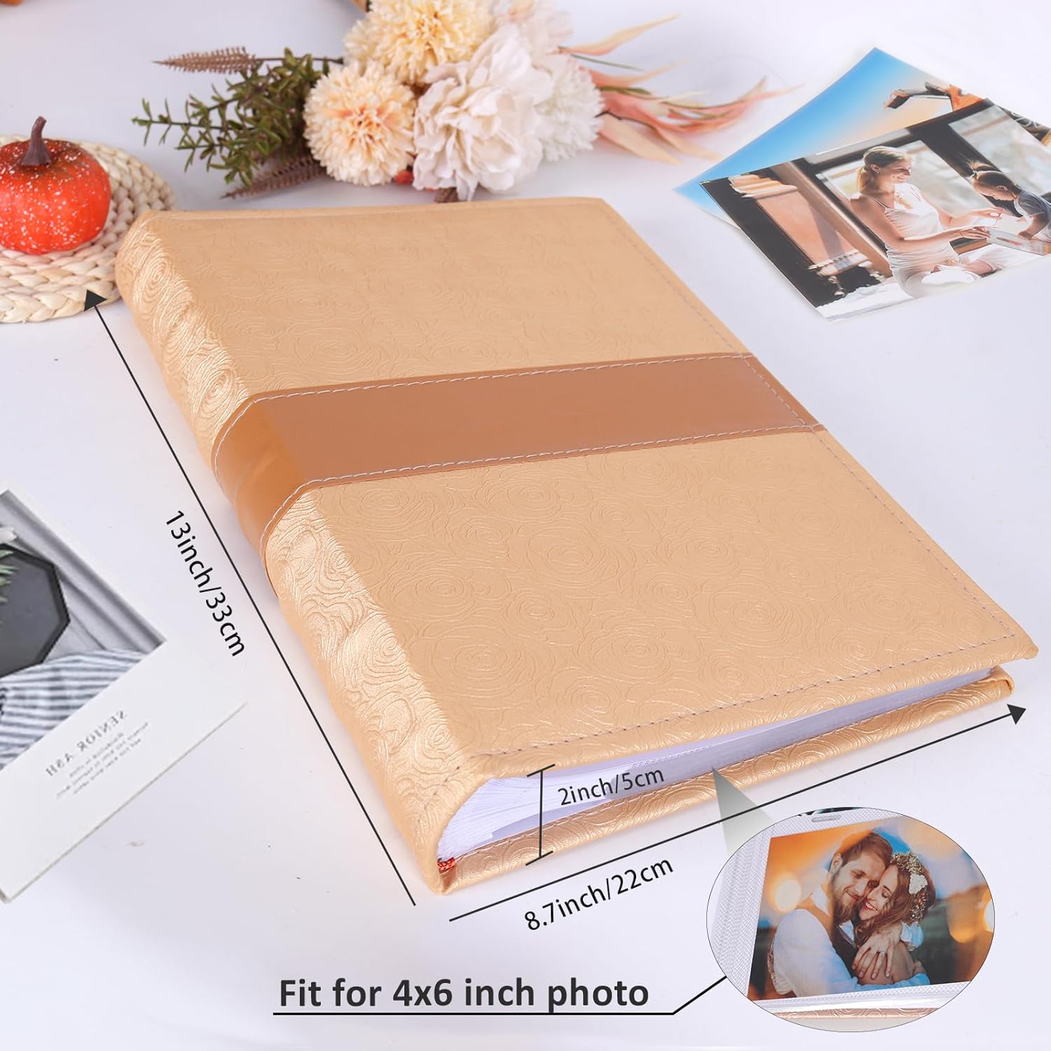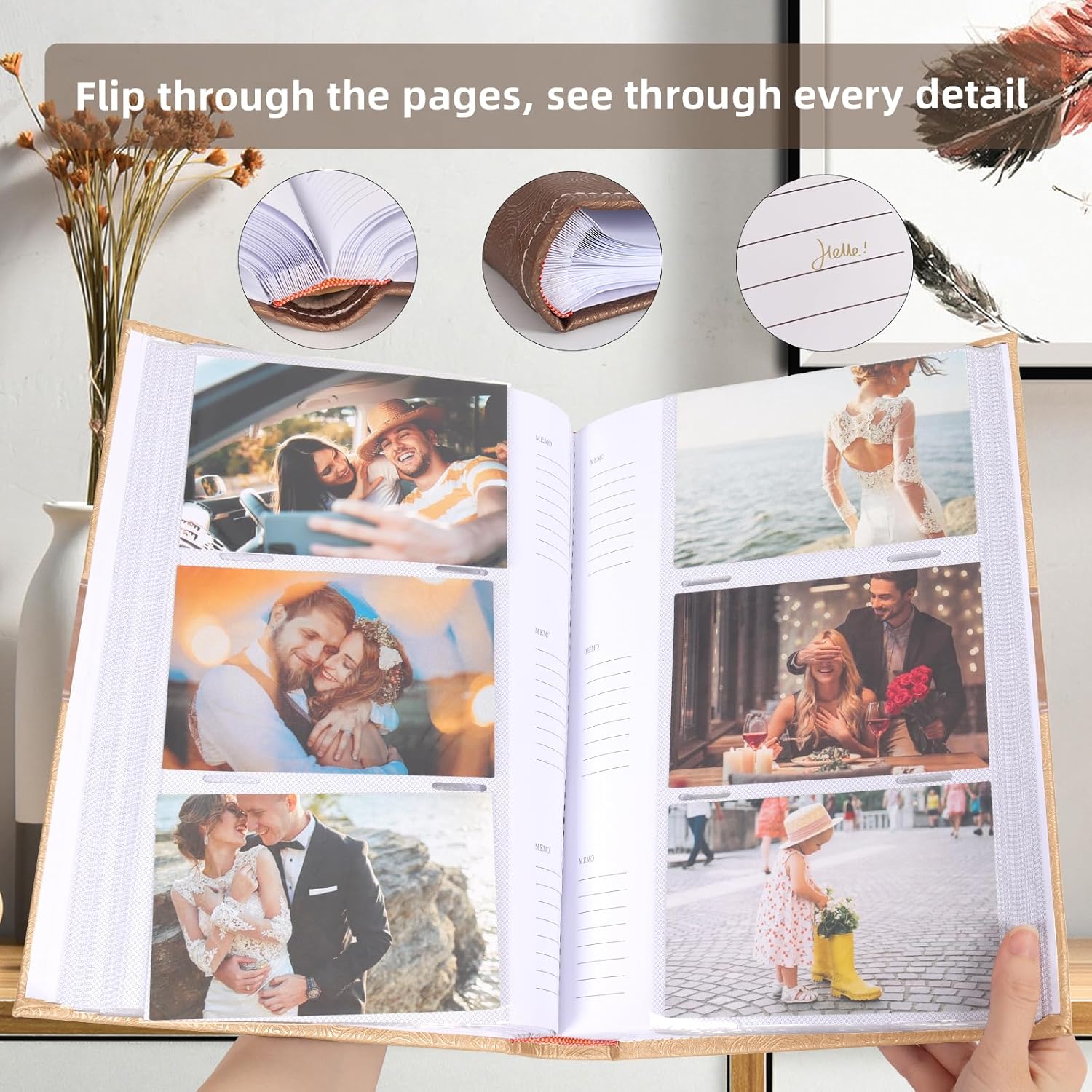 - 【Premium Quality Leather Cover】Photo albums with writing space are made of premium quality leather which can last for years ,keep photos protected and intact at all times. Rose pattern cover, beautiful and stylish