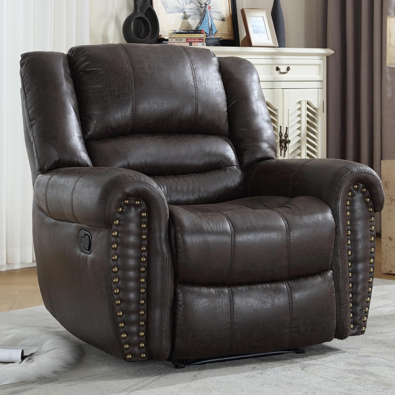 CANMOV Leather Recliner Chair, Classic and Traditional Manual Recliner Chair with Comfortable Arms and Back Single Sofa for Living Room, Dark Grey