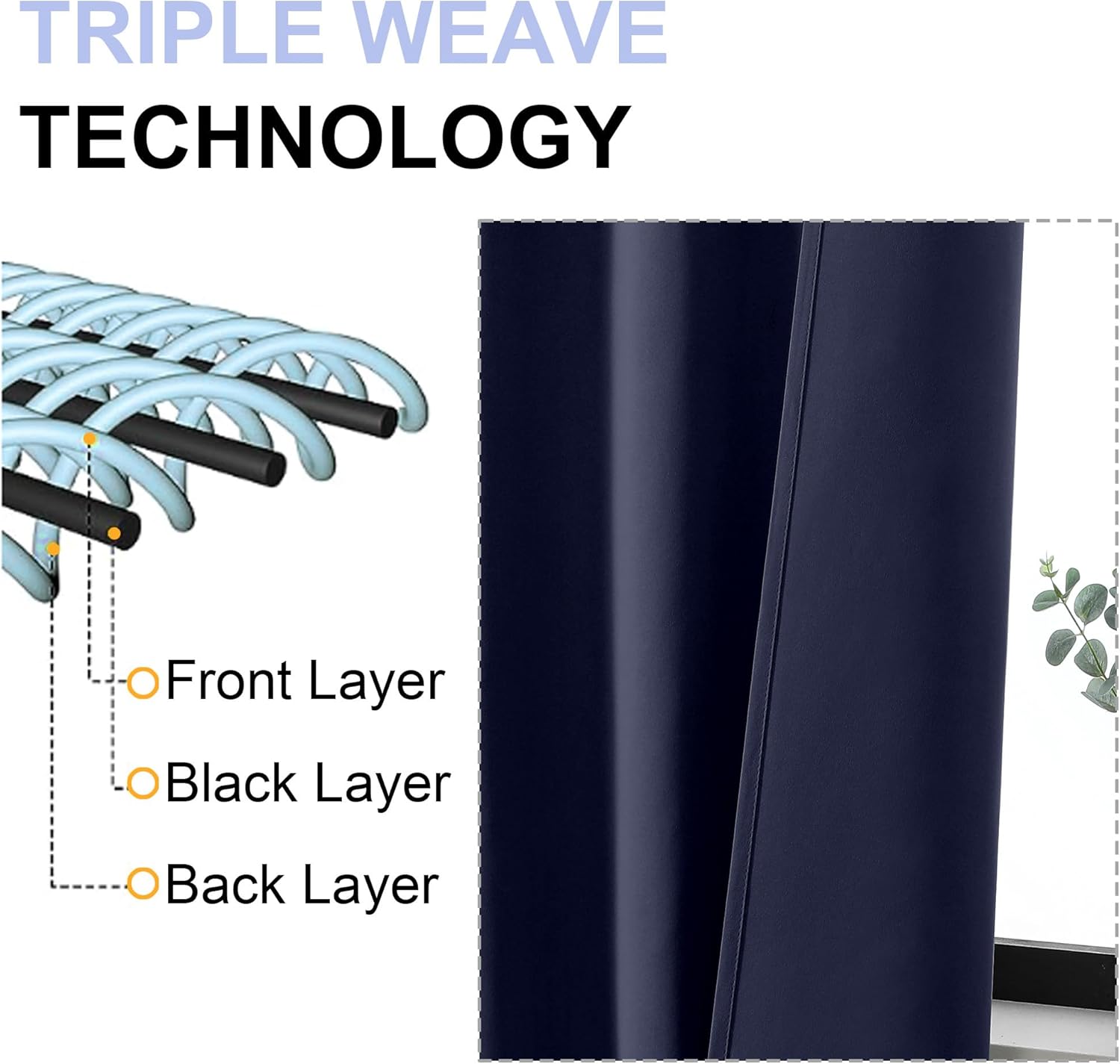- Energy Saving: The triple-weave light-blocking fabric balances room temperature by blocking heat in summer and cold in winter. Protect your furniture, floors, and artworks from the damaging effects of sunlight, and let the navy blue curtains pay for themselves over time. They are perfect for living rooms, bedrooms, yards, patios, villas, parlors.