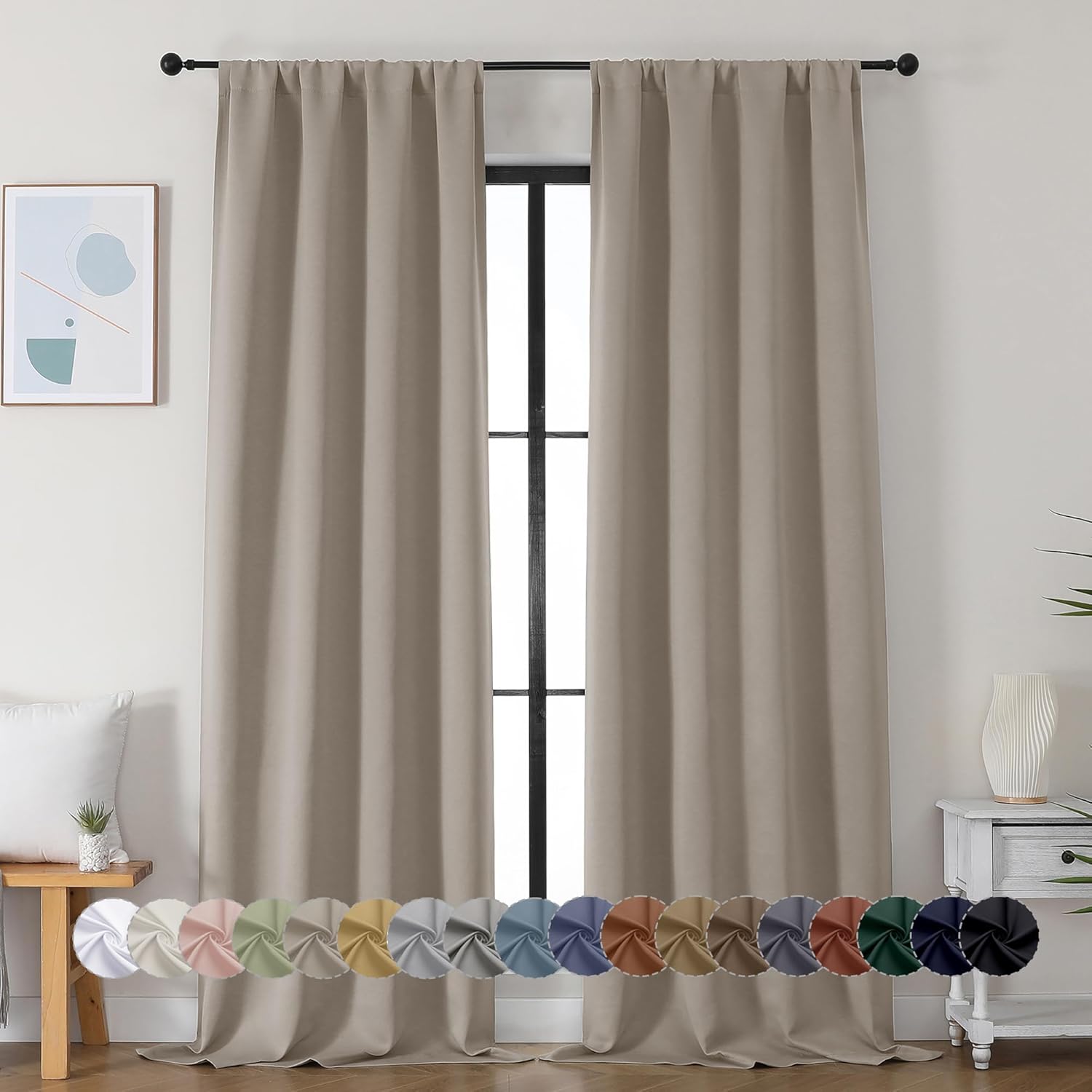 - Light Blocking: Our blackout curtains block 98% to 85% of light and UV, with darker colors up to 98% and medium shades at 85%. Even white curtains reduce light by 60%. Perfect for any room or lighting preference. Choose based on your room's direction and personal style. Ideal for bedroom privacy or living room ambiance. Our curtains blackout blend function with style, fitting seamlessly into your lifestyle.
