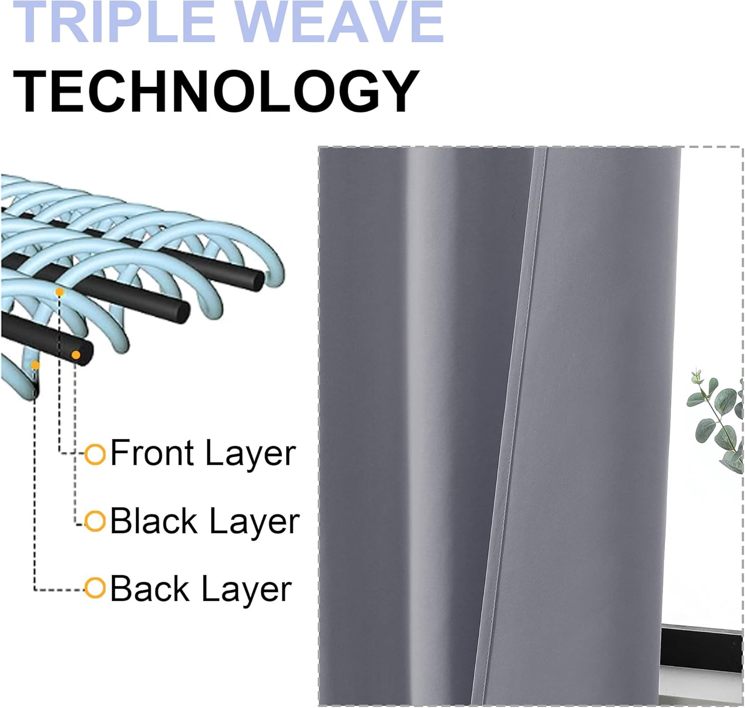 - Energy Saving: The triple-weave light-blocking fabric balances room temperature by blocking heat in summer and cold in winter. Protect your furniture, floors, and artworks from the damaging effects of sunlight, and let the silver grey curtains pay for themselves over time. They are perfect for living rooms, bedrooms, yards, patios, villas, parlors.
