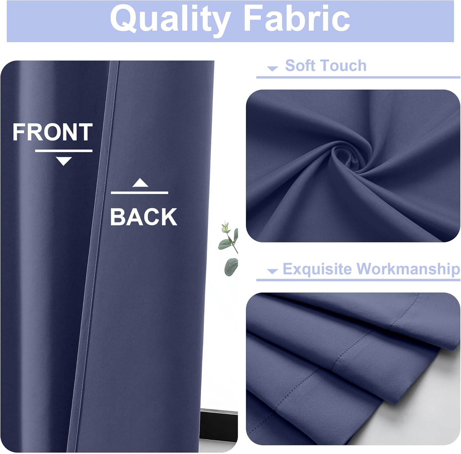 - High-Quality Materials: Crafted from high-quality polyester fiber, guarantee both stiffness and drape. This soft yet durable light-blocking fabric boasts a three-layer weave, with a middle layer of black yarn acting as an effective light-blocking panel, effectively blocking light while providing privacy. The identical colors on both sides further enhance its aesthetic appeal, adding a touch of elegance to your home.