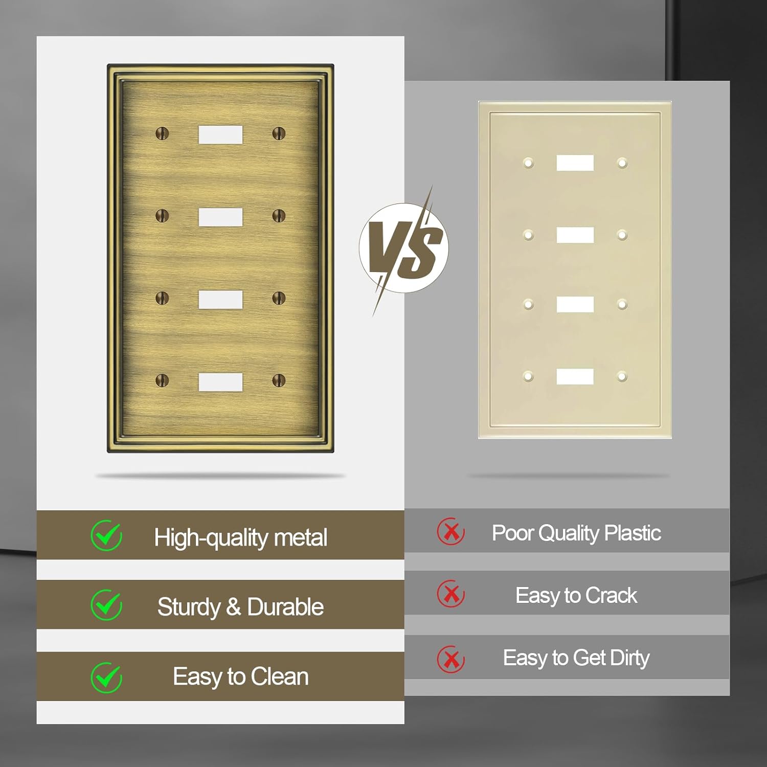 2 Pack Quad Toggle Light Switch Covers Plate, Antique Brass Metal Material Switch Plate Covers, 4 Gang Wall Plate for Light Switch - Classic Style