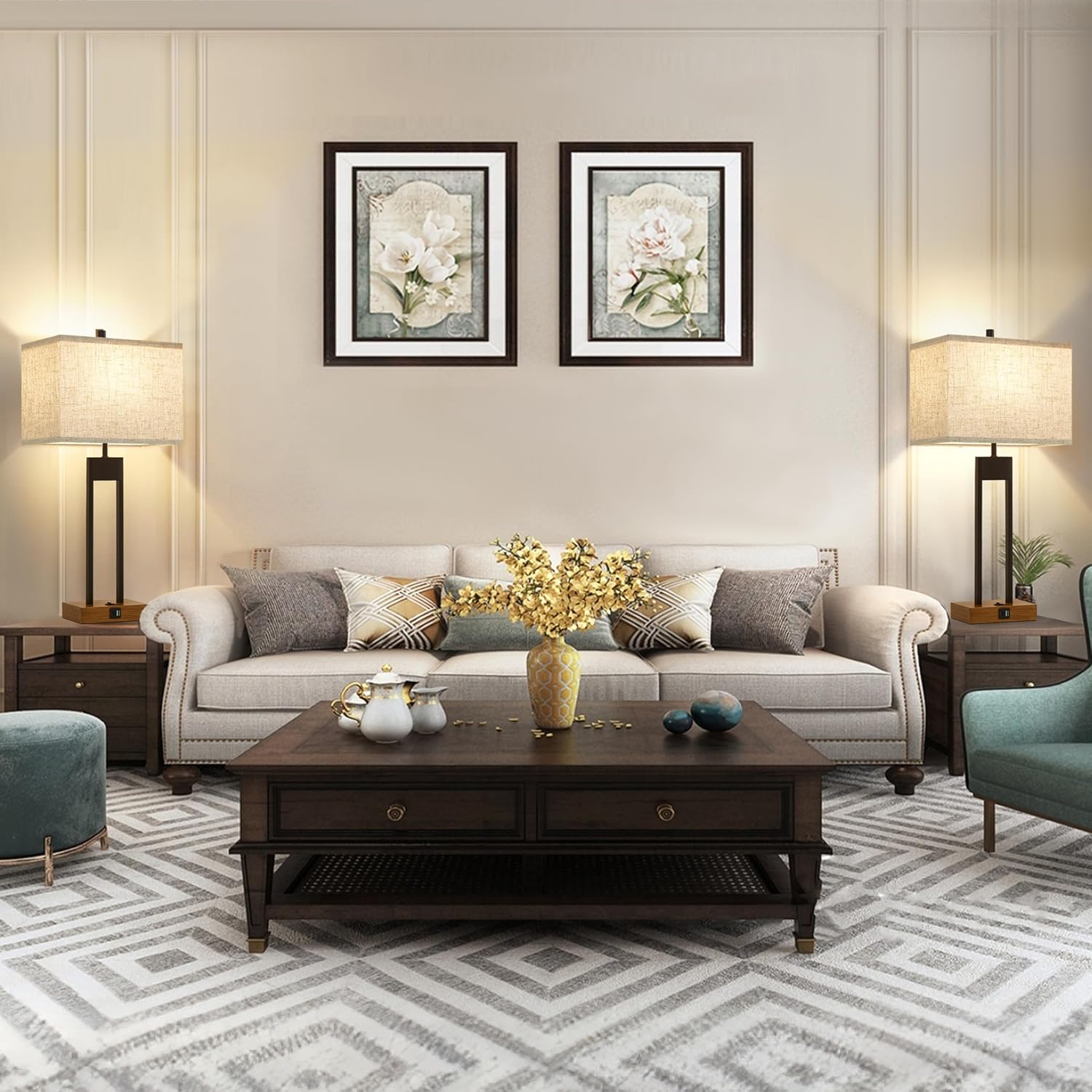 - 2 LED Blubs Included: This table lamp for the living room comes with two dimmable 9W LED 800-lumen bulbs. Eliminating the need to purchase extra bulbs. Give stable, soft lighting without flicker or glare, protecting your eyes. Ideal choice for bedside reading, end table lamp, side table, office work