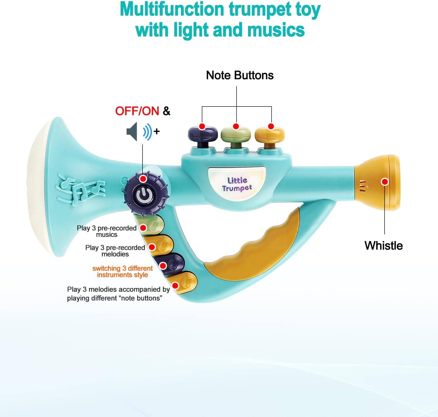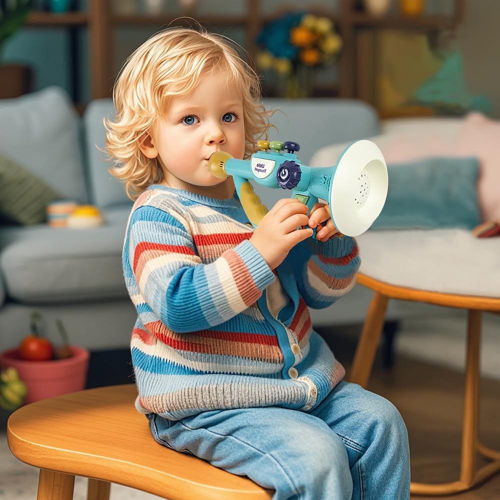 - Funny musical toys for toddlers: Multifunction trumpet toy with light and musics; Cute 16 Holes Harmonica; Kid-friendly Recorder Flute. This toy set helps to stimulate children's interest in music.