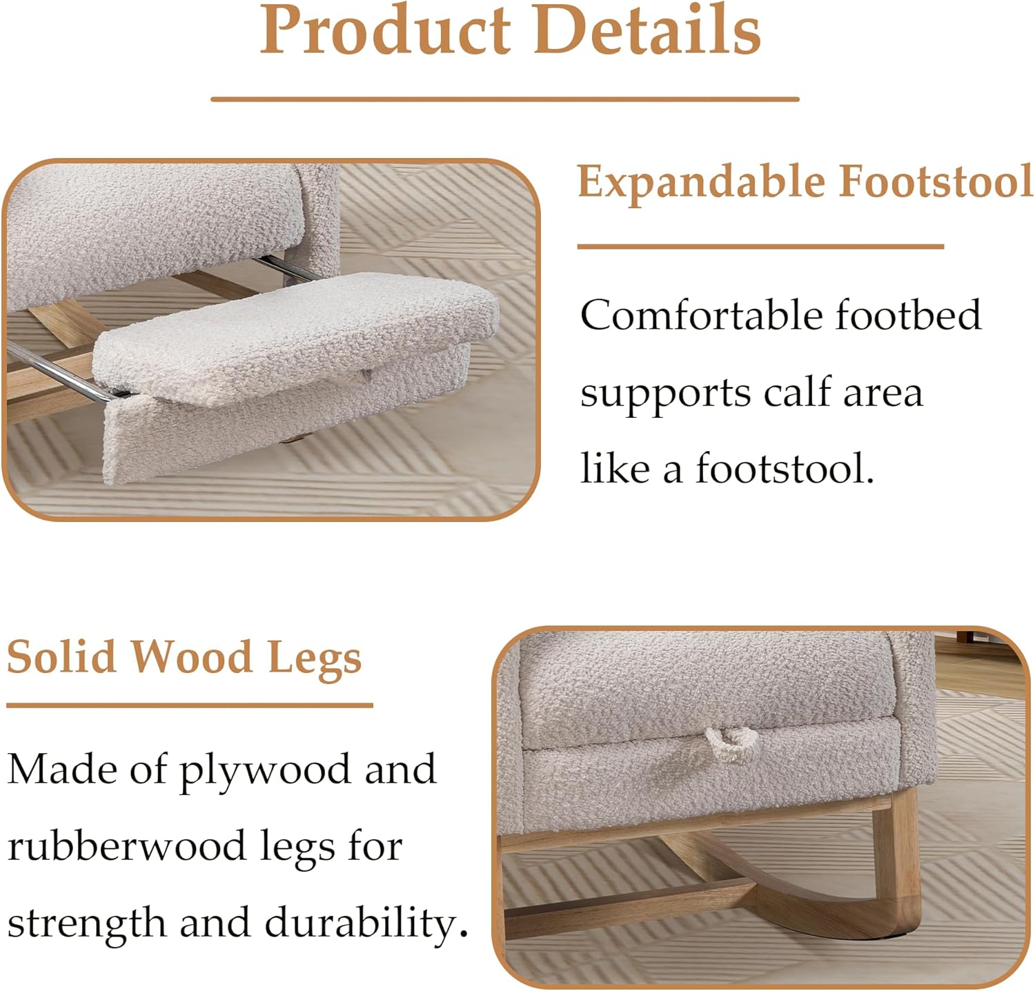 Nursery Rocking Chair with Foot Rest, Upholstered Glider Chair with Two Side Pockets, High Back Nursing Chair, Rocker Accent Armchair for Bedroom Living Room (Ivory)