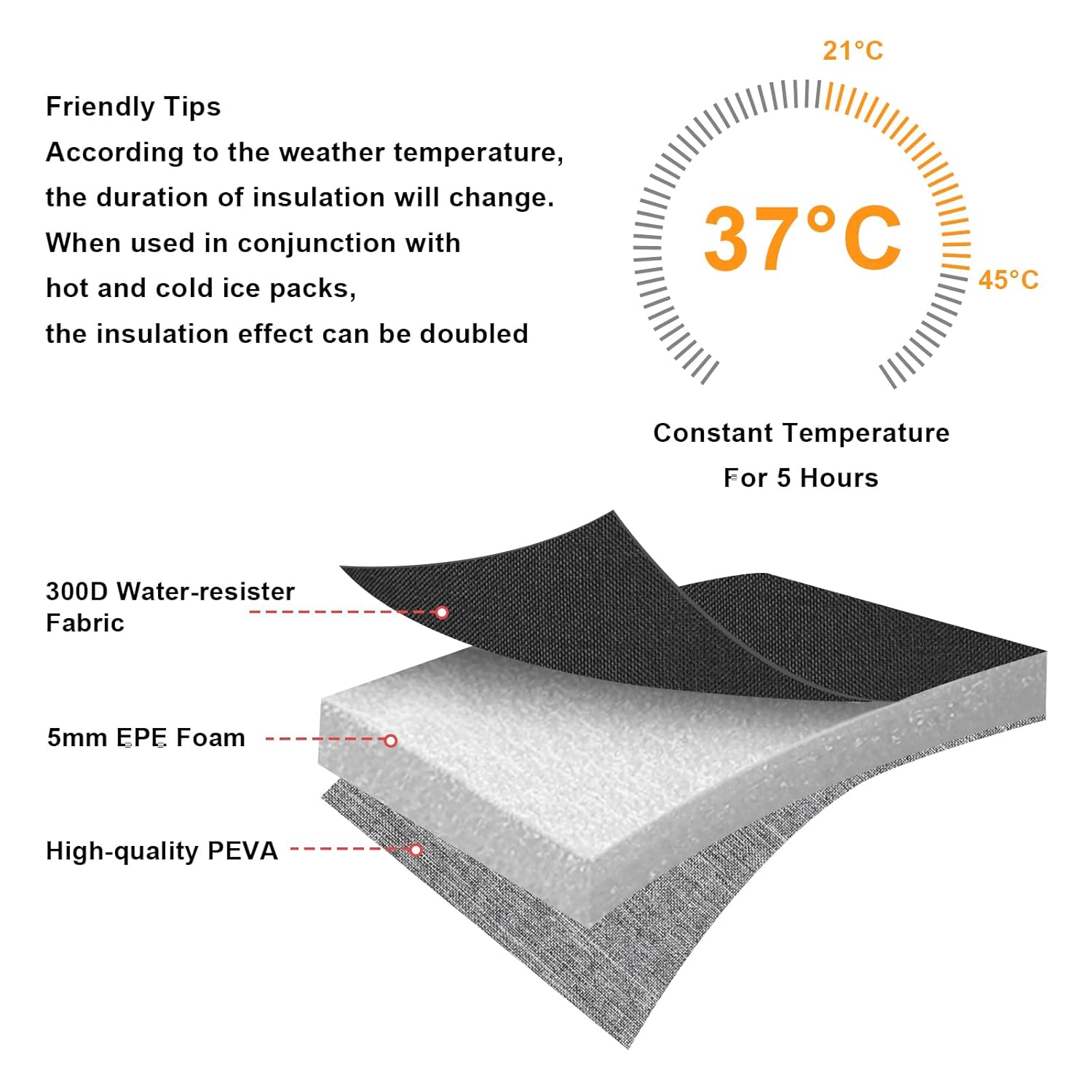 - HIGH QUALITY MATERIALS: This bottle cooler bag is made of high quality water-resistant 300D composite oxford fabric, 8mm extra-thick EPE foam and food-grade PEVA, non-toxic and food safe. Insulated lining can keep bottles cool or warm, it is a perfect breastmilk cooler tote bag for nursing mom.