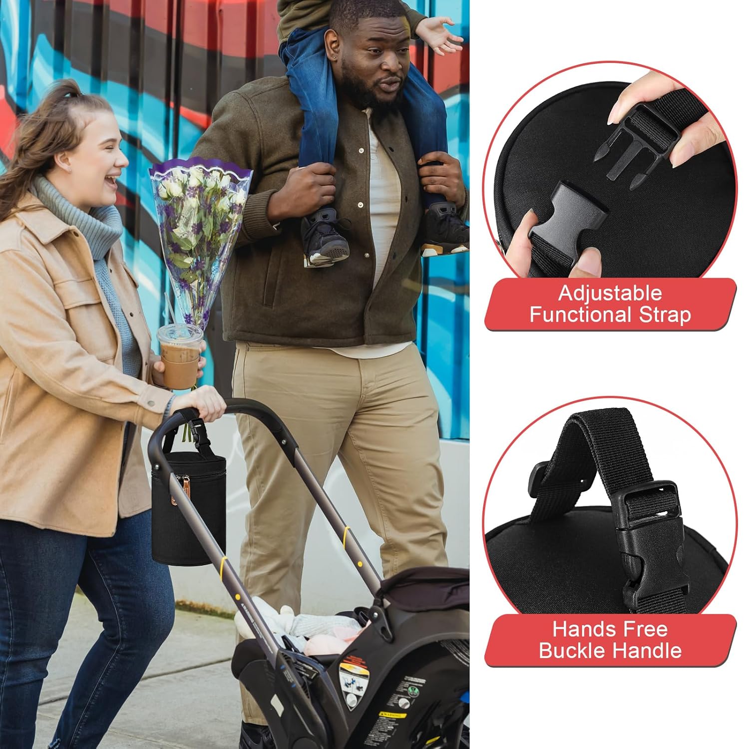 - DETACHABLE BUCKLE DESIGN: The detachable buckle is designed for hanging on a baby stroller or car seat. Fits for any stroller or pet Stroller. You can also attach it to diaper bag, back seat of car, or take it as a small tote bag.