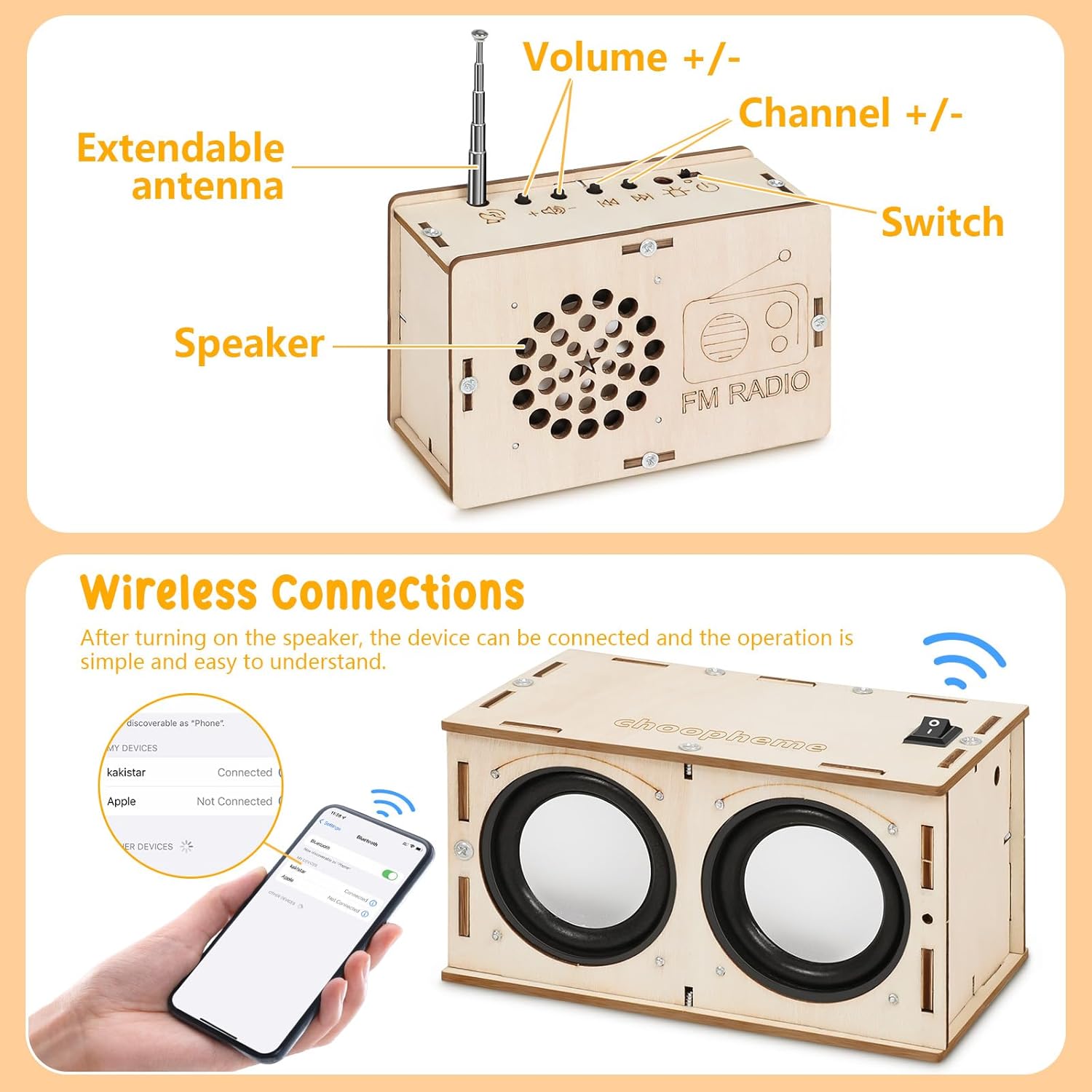 - 【Easy to Assemble】 Each science kit comes with clear and detailed assembly instructions. Just need one small phillips screwdriver can build your own bluetooth speaker and radio. Building to keep brain sharper. Designed to motivate children to love science and building children's confidence. Perfect stem kits for kids age 8-10.