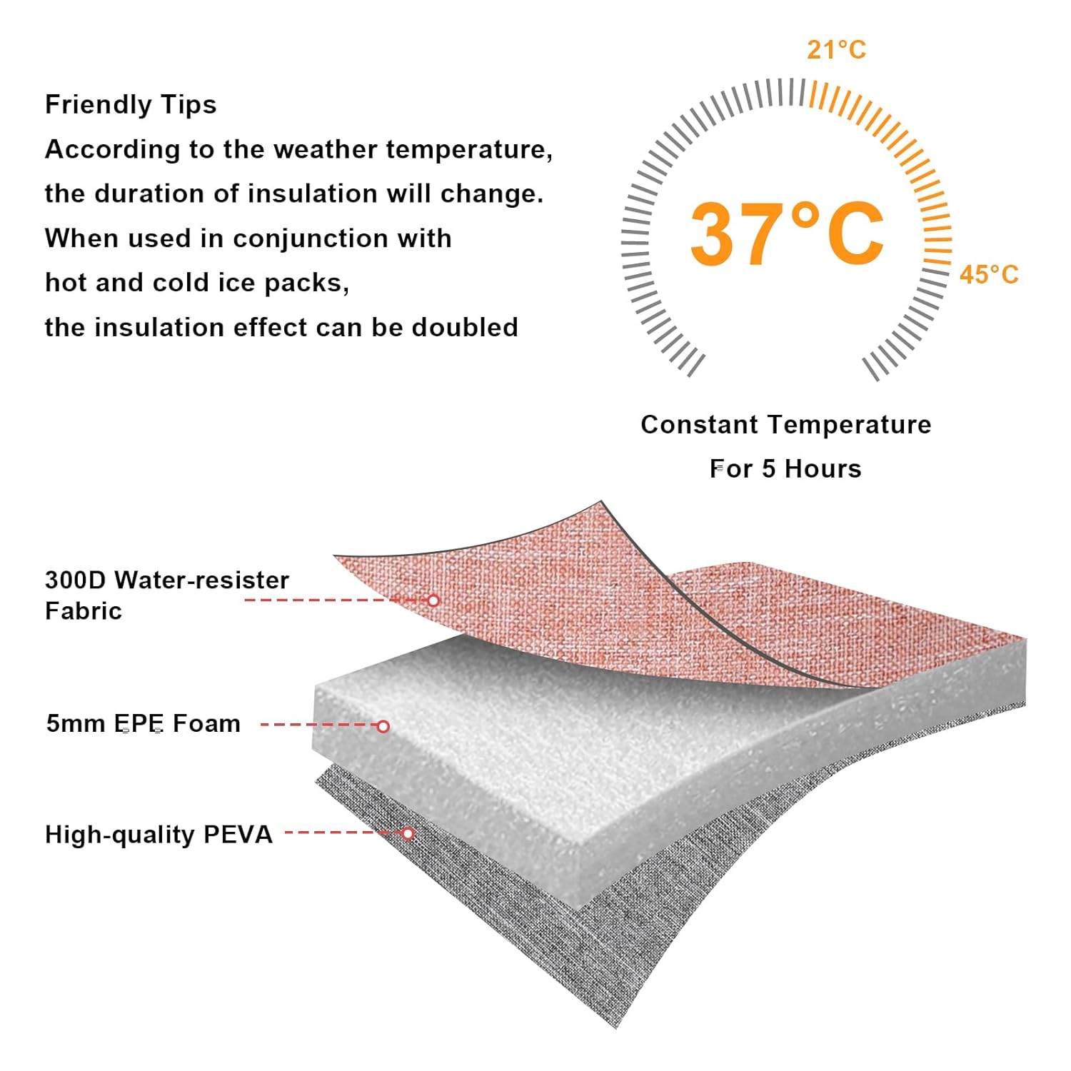 - HIGH QUALITY MATERIALS: This bottle cooler bag is made of high quality water-resistant 300D composite oxford fabric, 8mm extra-thick EPE foam and food-grade PEVA, non-toxic and food safe. Insulated lining can keep bottles cool or warm, it is a perfect breastmilk cooler tote bag for nursing mom.
