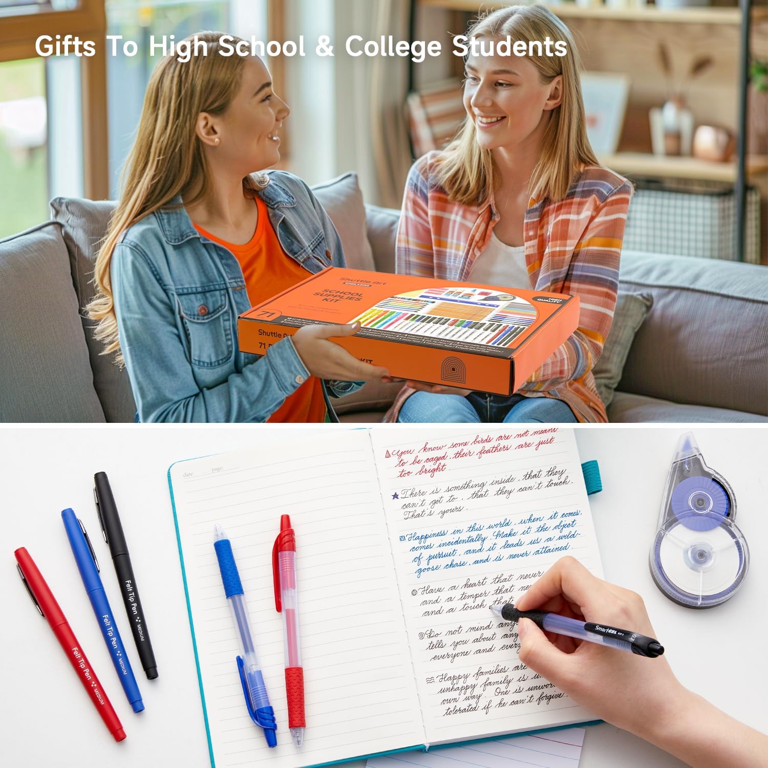 71 Pack School Supplies Kit, Shuttle Art Back to School Supplies for Teachers, Middle High Schools, College School Supplies with Highlighters, Pencils, Gel Pens, Dry Erase Markers, Felt Tip Pens, Glue