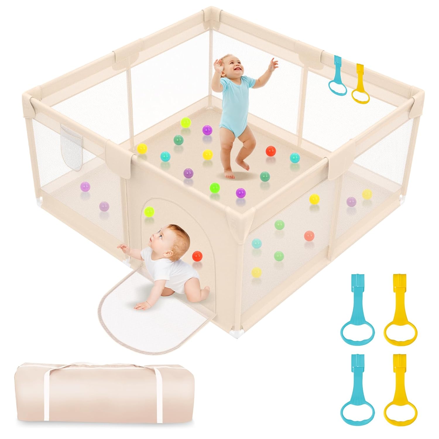 Playpen for Babies and Toddlers 50x50 inch - Baby Gate Playyard with Soft Breathable Mesh Cover - Indoor and Outdoor Baby Play Pen - Portable Playpen for Babies (Apricot)