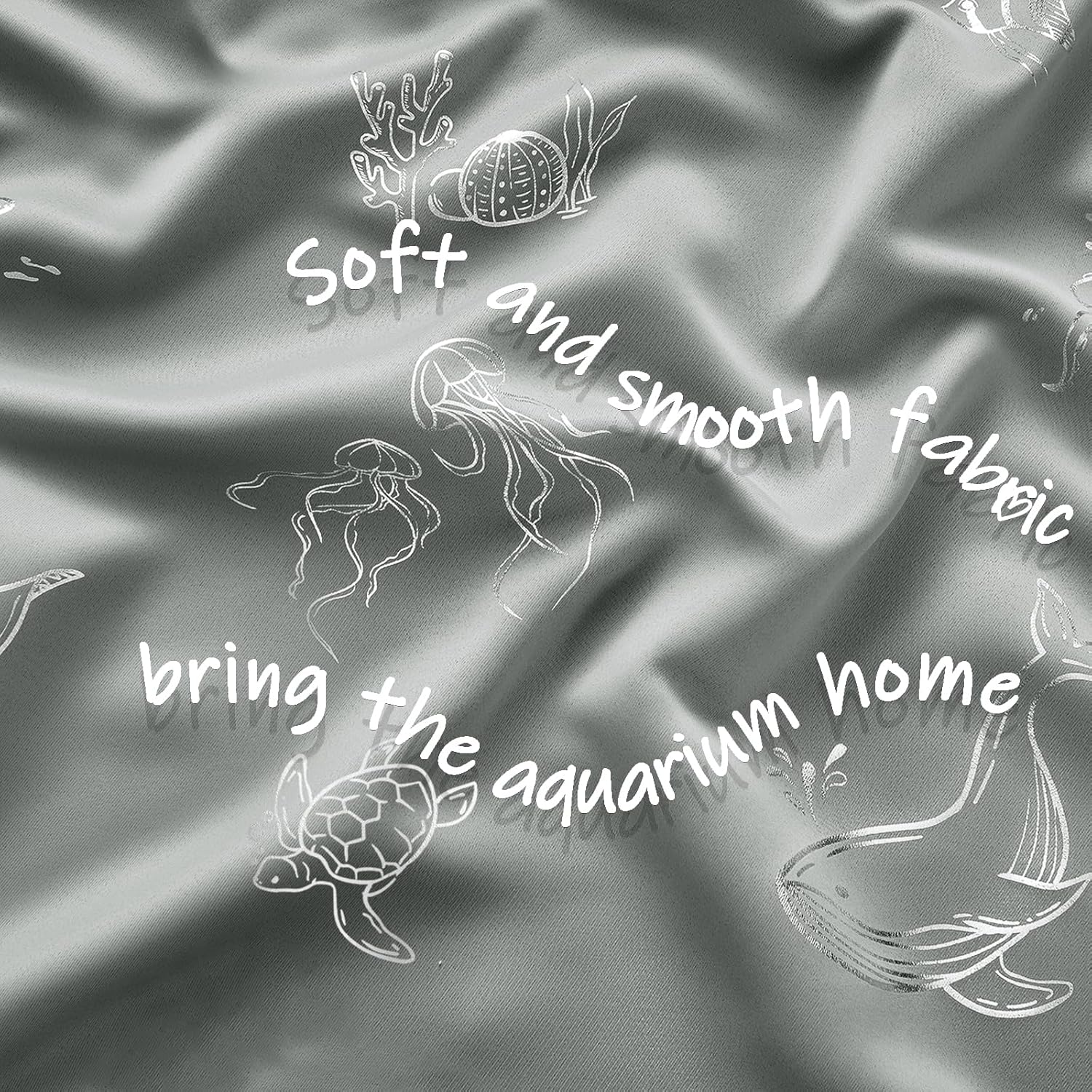 Vangao Kids Curtains for Boys Bedroom Kids Blackout Curtains 84 Inch Length Ocean Aquarium Nursery Drapes for Girls Bedroom Silver Sea Animals Print Thermal Insulated Drapes, Grey 2 Panels