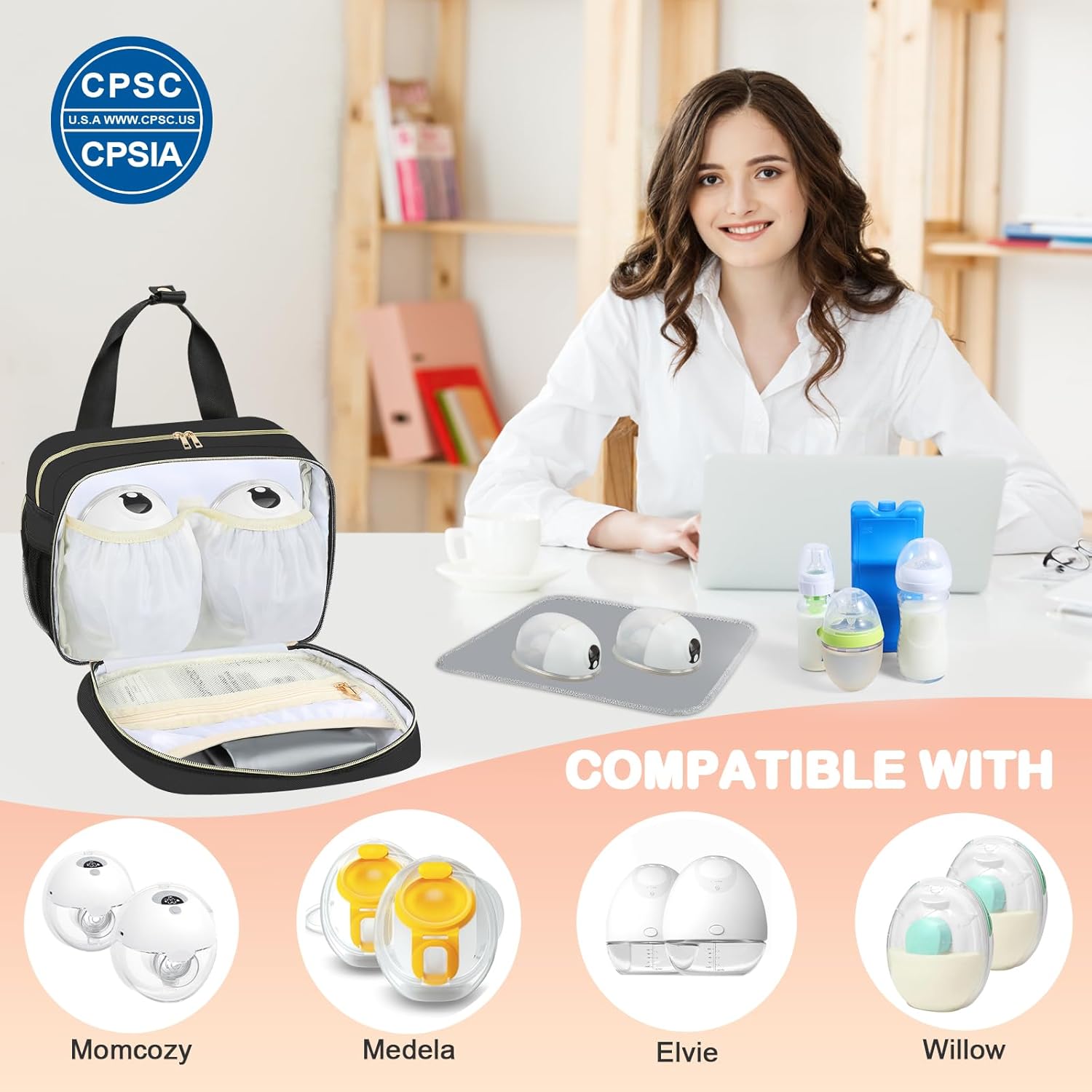 PIIOSER Insulated Baby Bottle Bag with Ice Pack, Breastmilk Cooler Compatible with Wearable Breast Pumps & Accessories - Breastfeeding On The Go Travel for Nursing & Working Moms, Black
