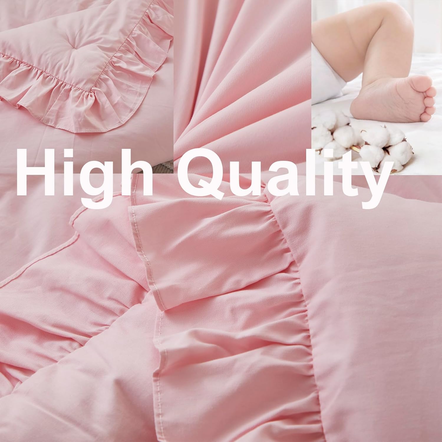Brandream Farmhouse Crib Bedding Sets for Girls and Boys | 3 Piece Nursery Set Pink Ruffles | Baby Comforter, Fitted Crib Sheet, Crib Skirt Included,100% Cotton Percale