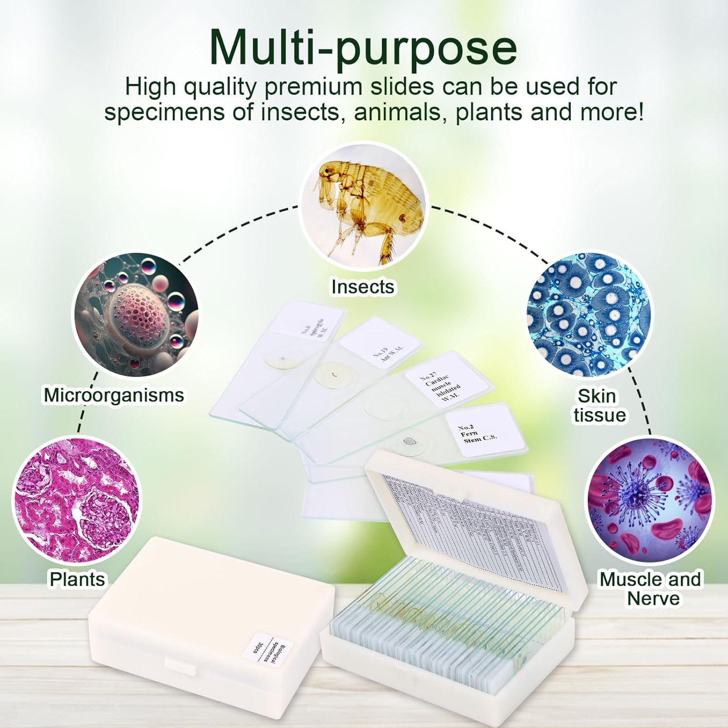 - 【Application】Professional microscope slides for kids can stimulate children's curiosity to explore nature and science, this basic biology specimen set is not only for home study and teaching demonstration, but also a wonderful gift