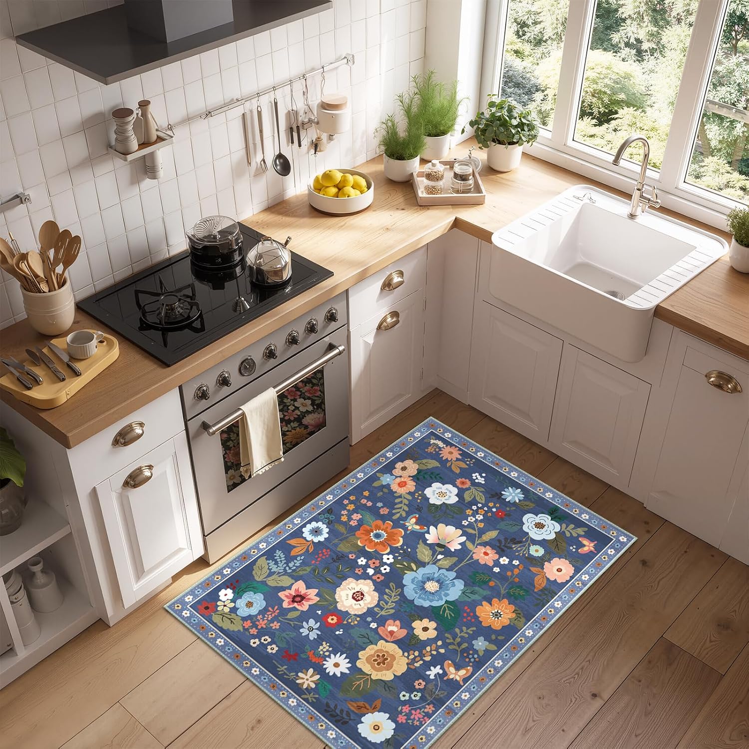 - Machine Washable:The entryway rug are machine washable,allowing for both machine wash and hand wash options.It is recommended to wash them in cold water.This floral rug is crafted with a low pile that won’t block opening and closing doors,make machine wash possible.Small stains can be blotted with a rag,soft-bristled brush,vacuum,or robotic vacuum cleaner.Avoid using bleach and high-temperature ironing