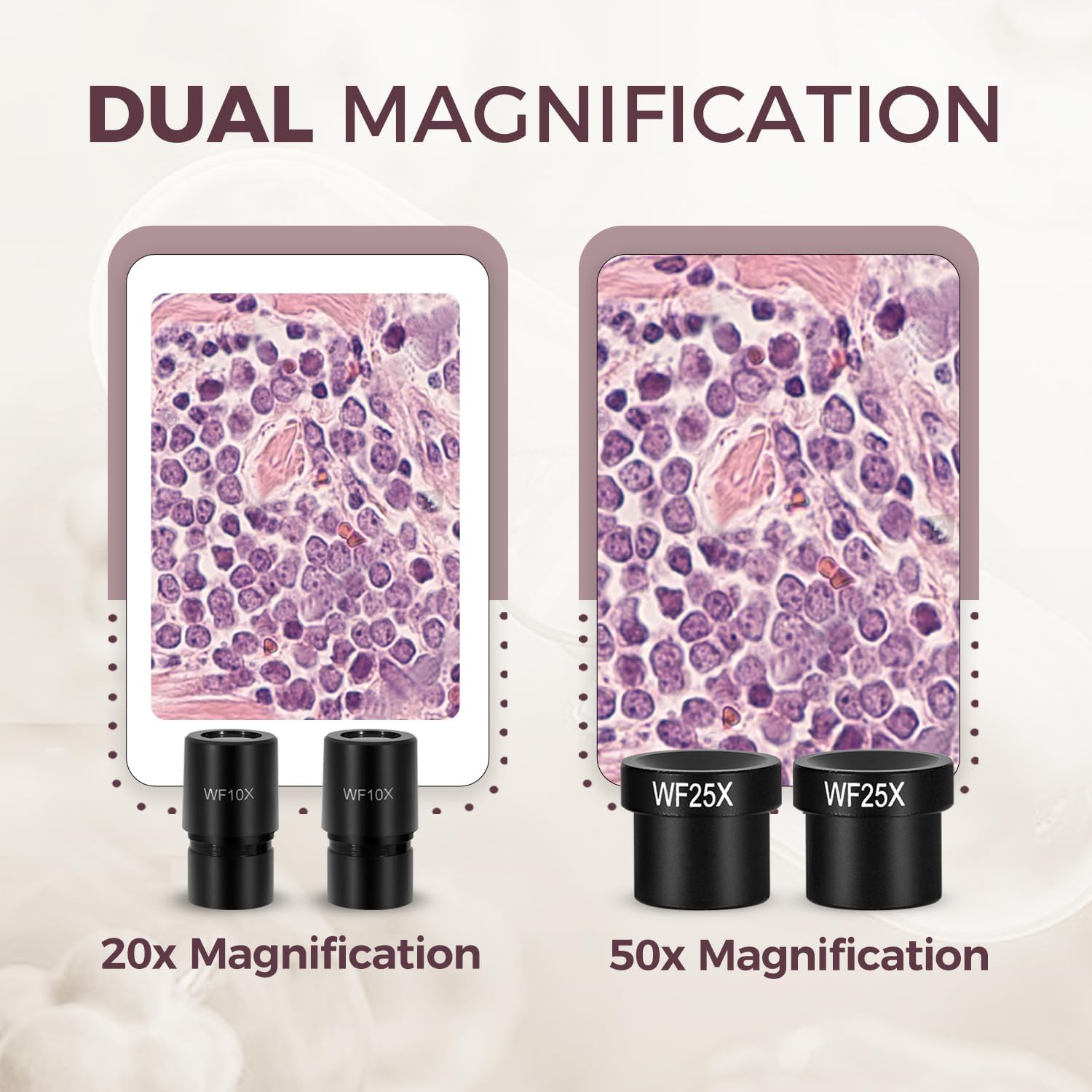 - Dual Eyepieces: Features two eyepieces offering 20x and 50x magnification, offering detailed close-ups and broader views for versatile observation needs.