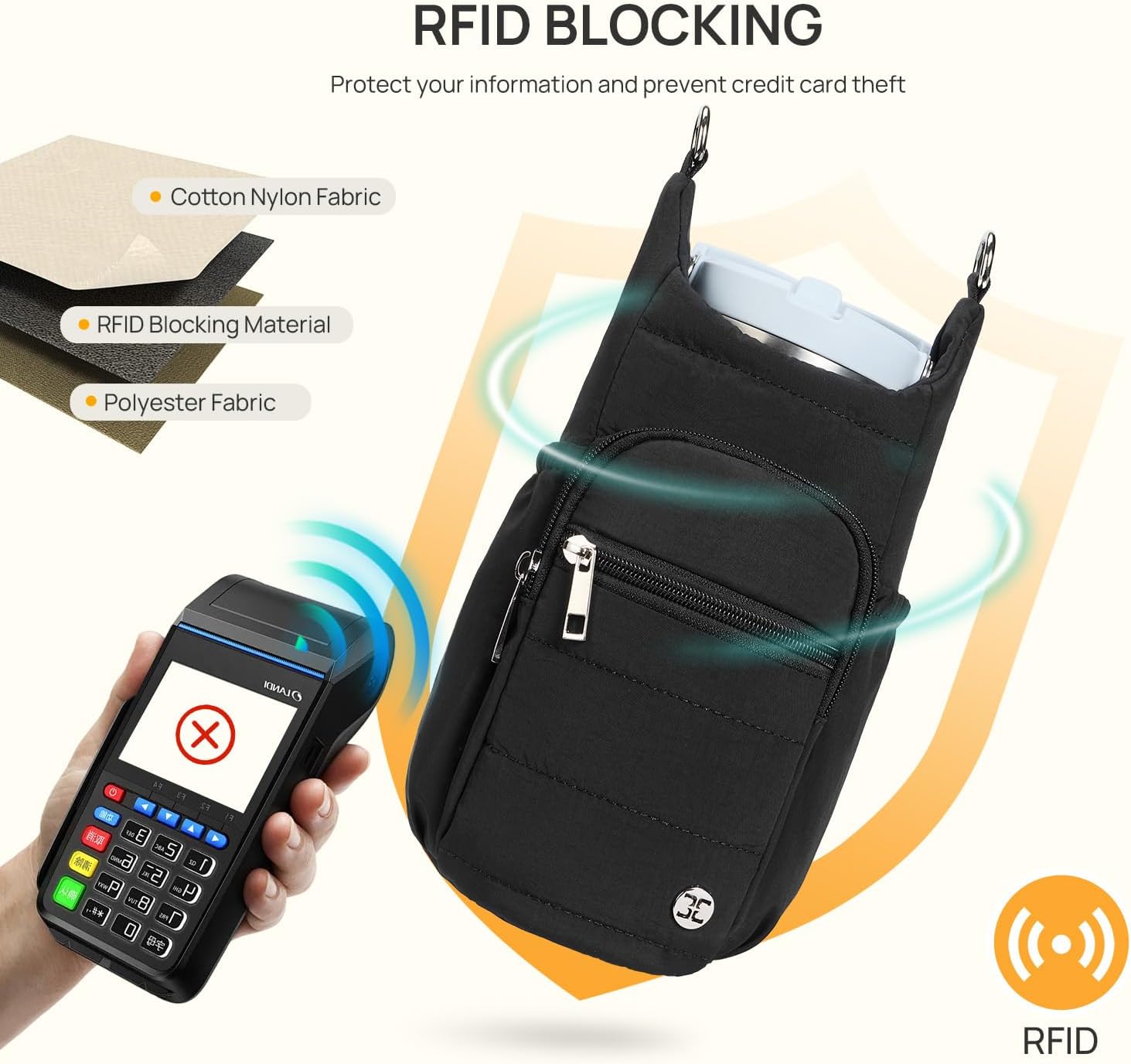 • Multiple Pockets: Water bottle carrier bag come with phone pocket for cellphone under 6.7". Front zipper pocket and inner card slots can place small items like your cards or change. Two side pocket can be used to store items you need to grab quickly, such as headphones. The bag also comes with a lanyard for hanging keys and more