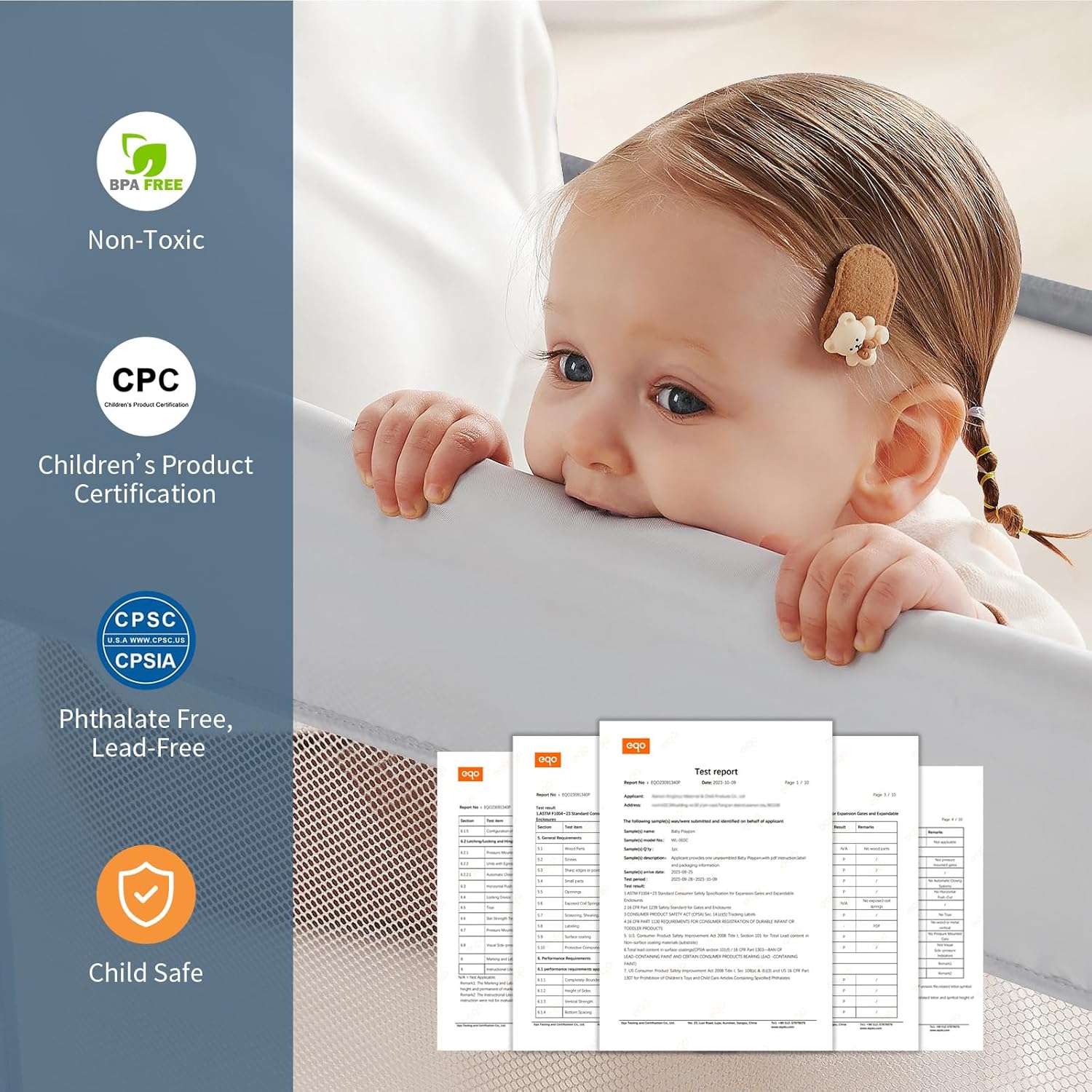 - [SAFETY FIEST]: Designed with safety in mind, our baby playpen features high-density sponge padding around the top and non-slip suction cups at the base, keeping your playpen securely in place and reducing the risk of bumps,your baby is safe in such a sturdy playpen.