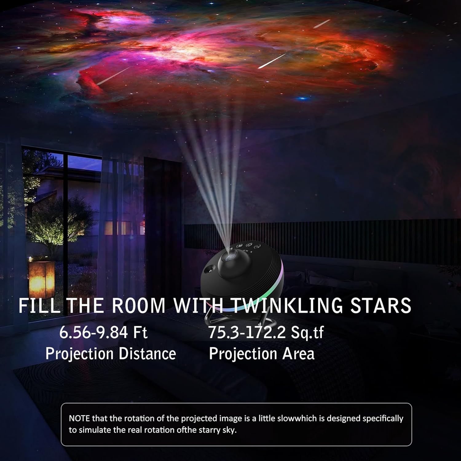 - 【The Perfect Gift Choice】It's a perfect choice for kids, friends, lovers, or family members. The galaxy projector for bedroom creates a wonderful and romantic atmosphere for birthdays, Children's Day, Christmas, and room decoration. The ceiling projector is suitable for various holiday and party settings, aiding children's sleep, fostering parent-child learning, and providing a soothing sleep environment.