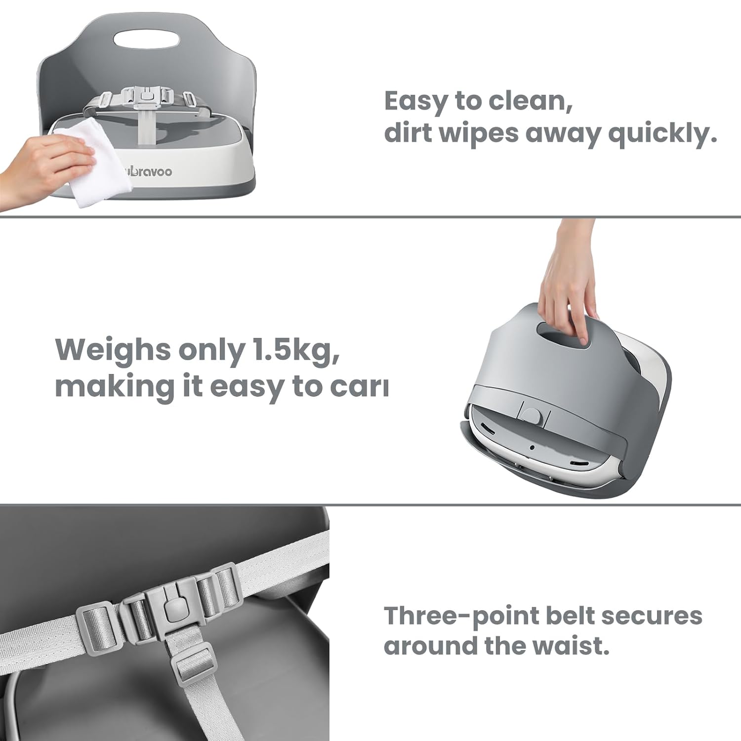 Baby Booster Seats, Toddler Booster Seat for Dining Table with Adjustable Straps, Portable Compact Portable Baby Chair for Dining and Travel (Grey)