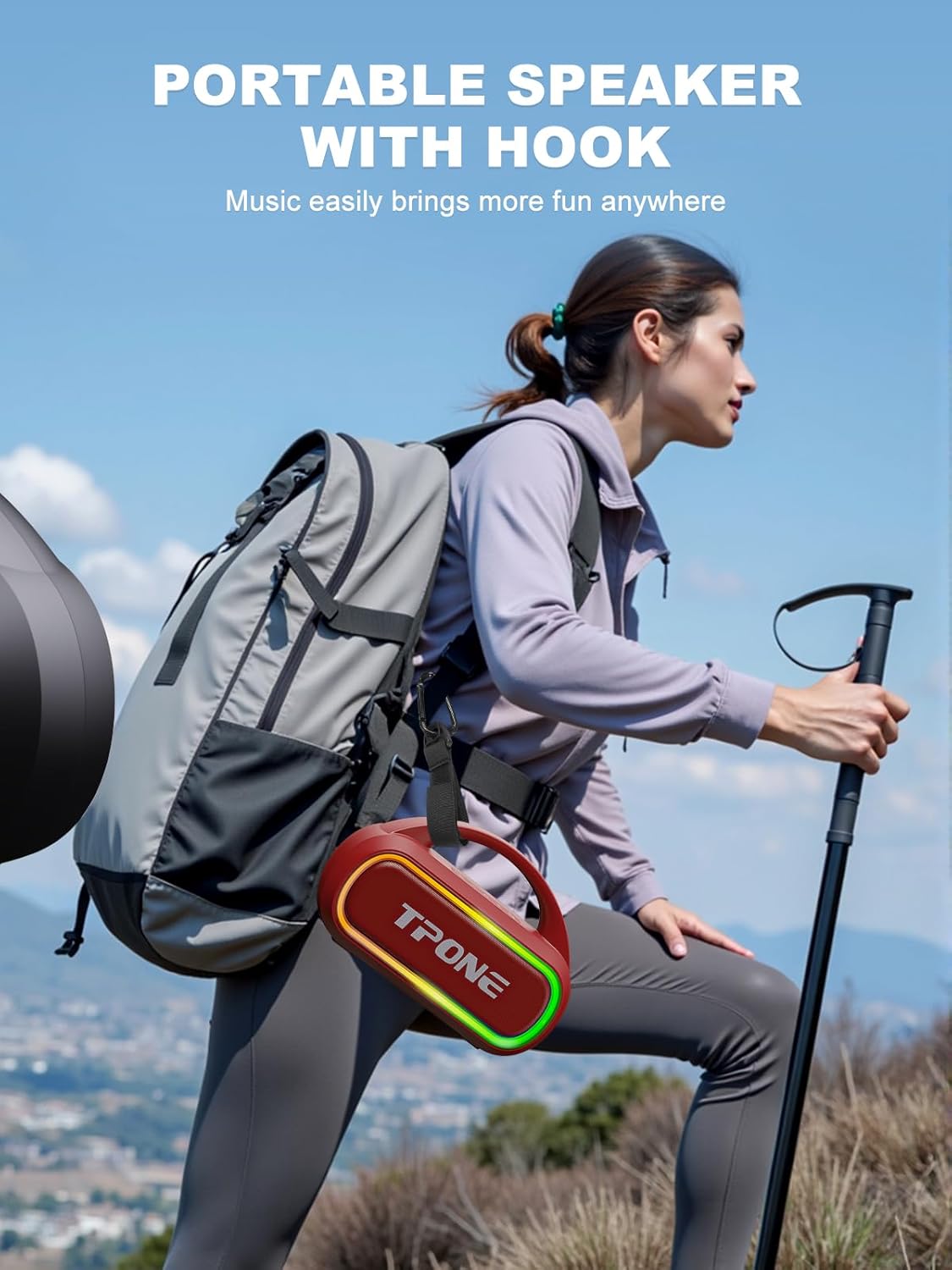 TPone Portable Bluetooth Speaker, 30W (Peak) Wireless Speaker for Outdoor, Up to 12H Playtime, IPX5 Waterproof with Light, TWS Pairing, for Home/Party/Outdoor/Beach, Birthday Gift (Red)