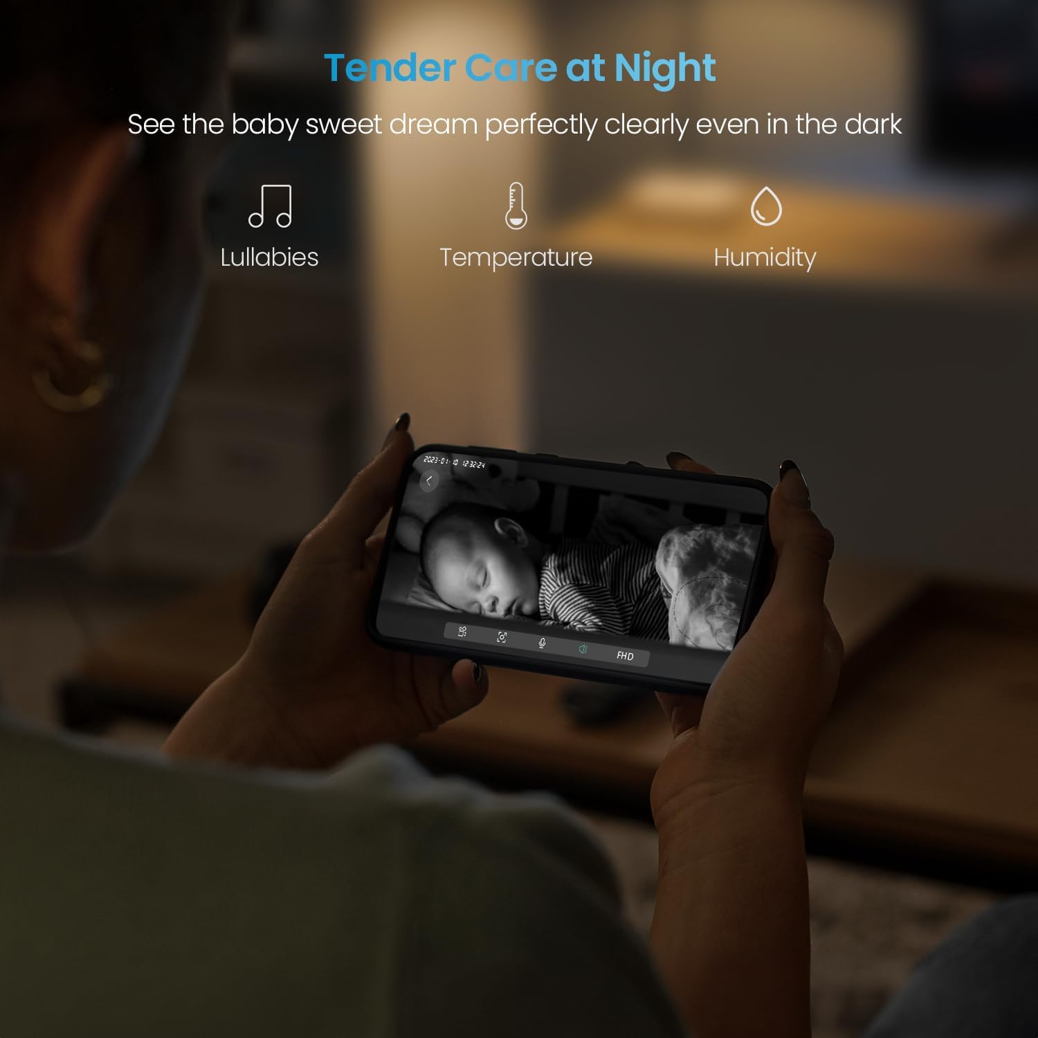 - 🔉Intelligent Care: Protect your little one with our smart baby monitor, featuring motion and sound detection sensors that alert you to any activity. Monitor the room's temperature and humidity levels for a comfortable environment, ensuring your baby's safety and well-being are always prioritized.
