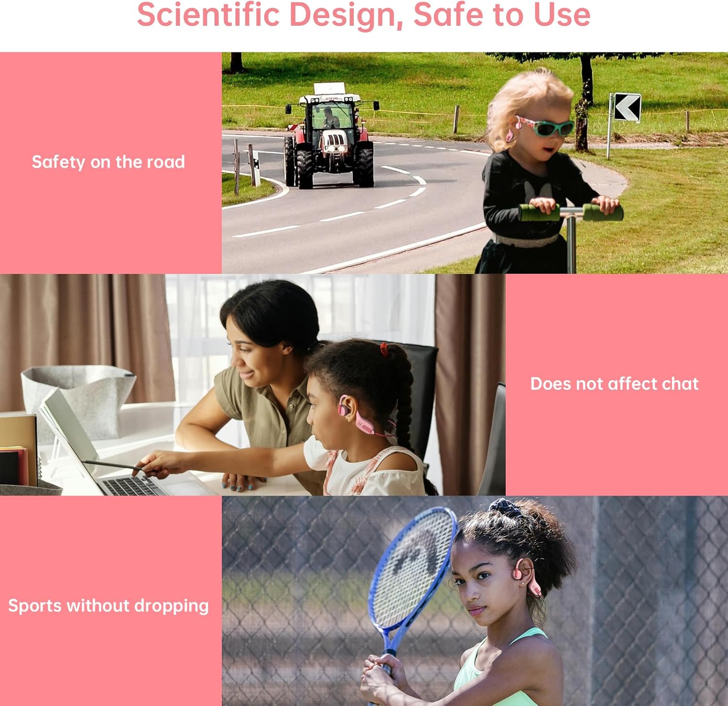 IFECCO Kids Open Ear Headphones - Kids Girls Bluetooth 5.3 Conduction Headphones with Mic,Ultra-Light,IPX5 Waterproof and Safer for Children Wireless Headphones,Perfect for School Travel Gifts (Pink)