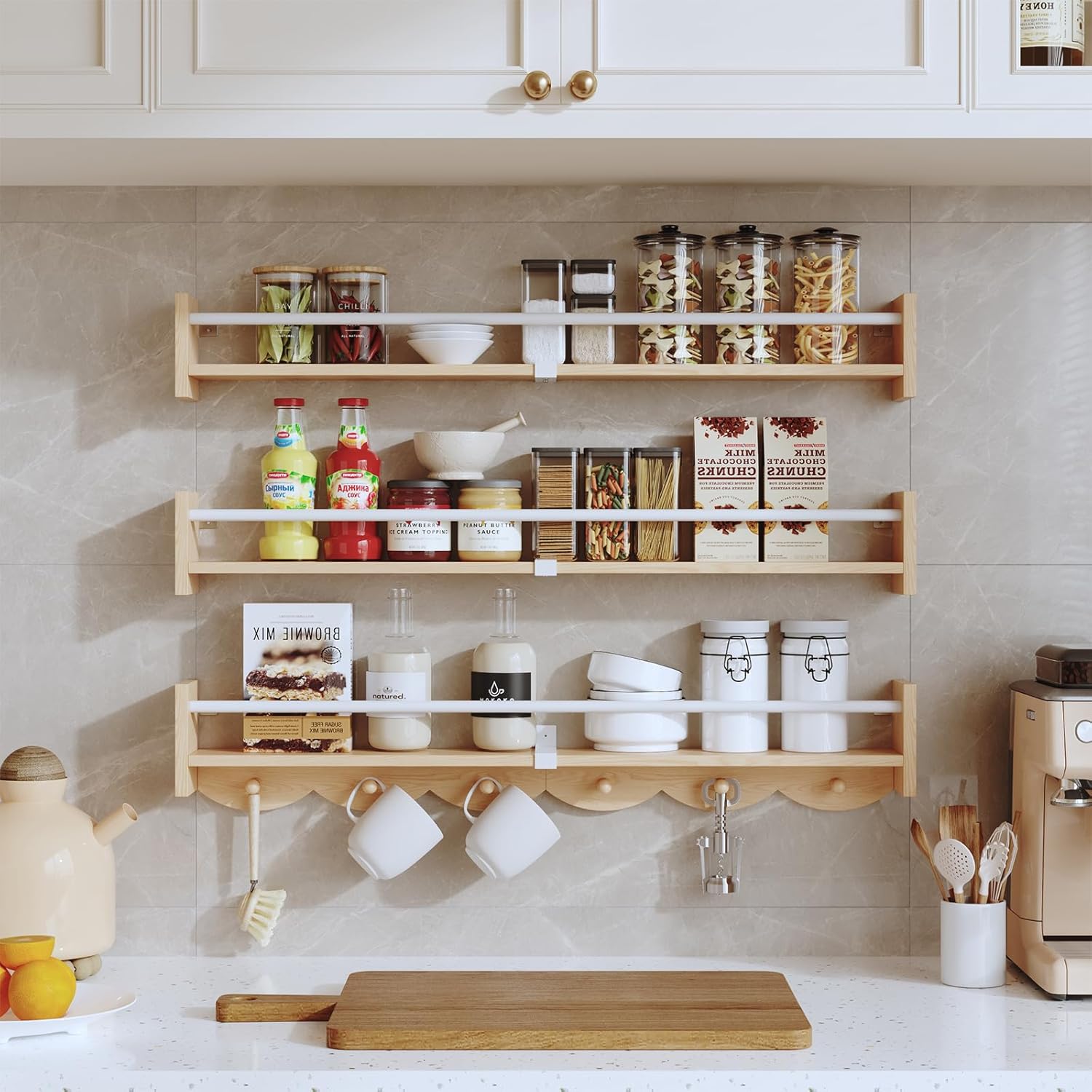 - 【MULTI-PURPOSE FLOATING WALL SHELVES】: Your creativity with this wall shelf. You can place it in your child's bedroom as a space-saving bookshelf or use it as a spice rack or condiment stand in the kitchen. Also can put it in the bathroom to store shampoo, conditioner, face wash, body soap, toothpaste, toothbrush, and other toiletry essentials.