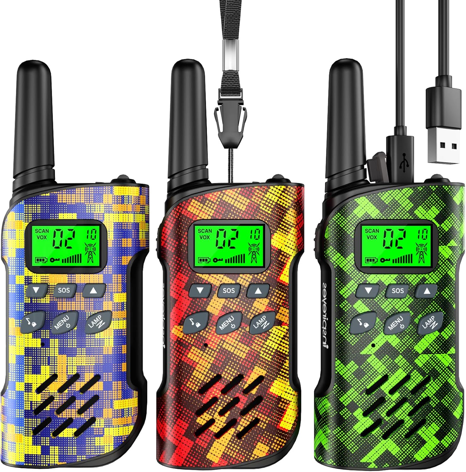 Walkie Talkies for Kids Rechargeable,Toys for Boys and Girls Ages 3-12, 3 Pack Long Range 2-Way Radios, Birthday Gifts,Christmas Stockings, Outdoor Play, Family Games, Hiking Camping Gear