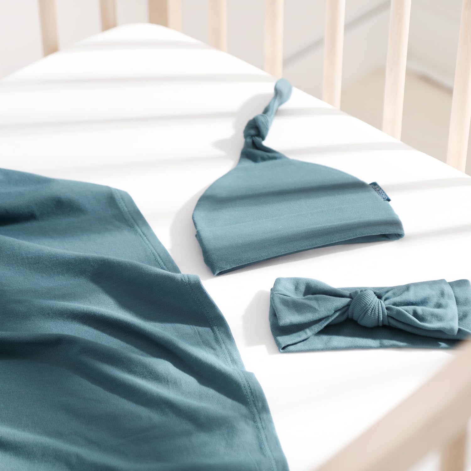 GRSSDER Newborn Swaddle Blanket, Ultra Soft Jersey Receiving Blanket with Matching Headband and Beanie Set, 47×47" Extra Large Nursery Swaddle Wrap for Girls and Boys