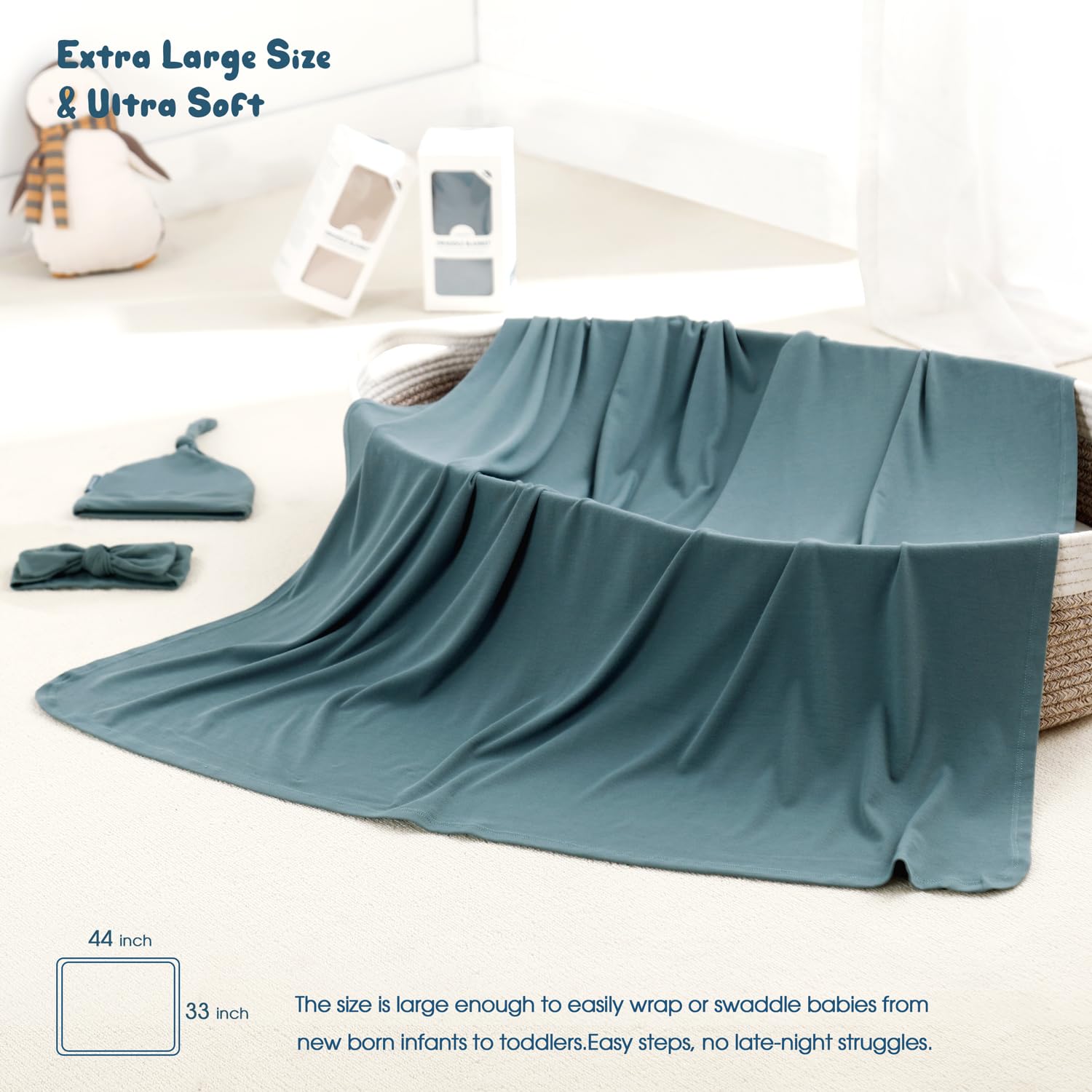 GRSSDER Newborn Swaddle Blanket, Ultra Soft Jersey Receiving Blanket with Matching Headband and Beanie Set 33×44", Stretchy Baby Neutral Swaddle Wrap for Girls and Boys