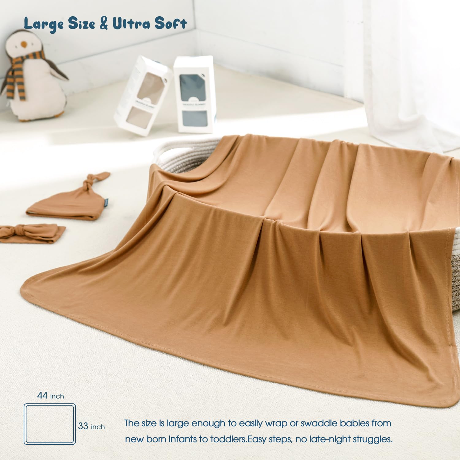 - Ultra Soft Fabric: Our baby receiving blanket is composed of stretchy, ultra soft, lightweight jersey fabric, and made of high quality viscose fibers. It's perfect to wrap your child in softness, warmth, and a feeling of security. Baby and toddler will love the blankets, as they are safe, comfortable and super soft on their skins.