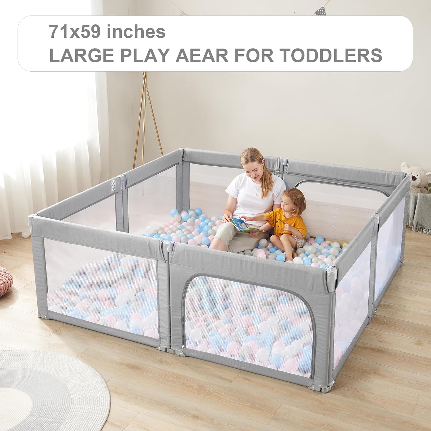 Foldable Baby Playpen, Shape & Size Adjustable Playpen for Toddler, 79x71 Large Play Pens Safety Mesh Foldable Playard for Babies, Portable Baby Fence Play Area Kids Play Pen, Grey