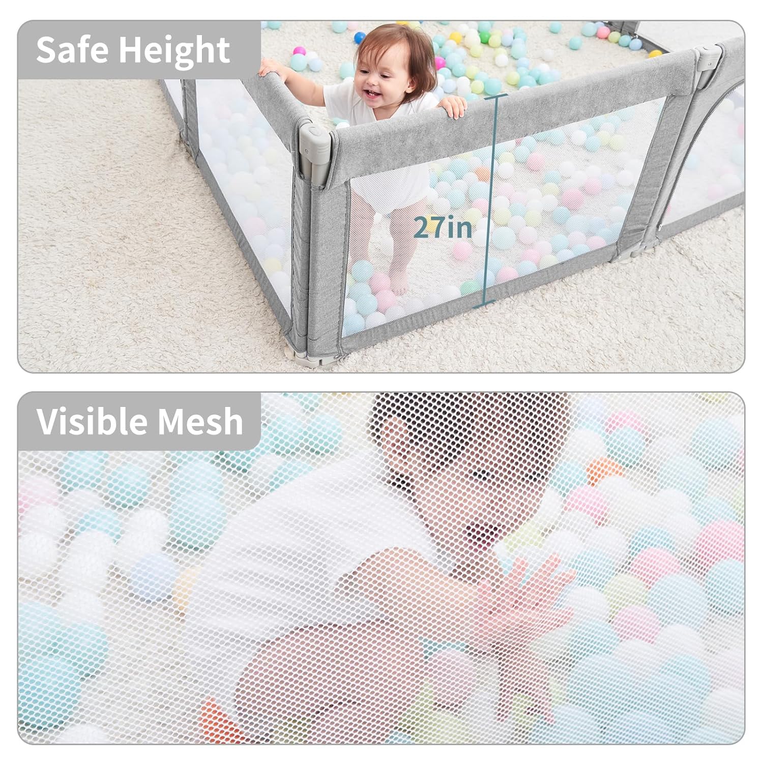 - 【Visible Mesh for Watching】Soft breathable mesh panels allow parents watching baby easily, interact with baby all the time, it also gives babies a good view all the way around them, which will make your little one feel relaxed and more comfortable, and they can play with their toys around without bothering from pets