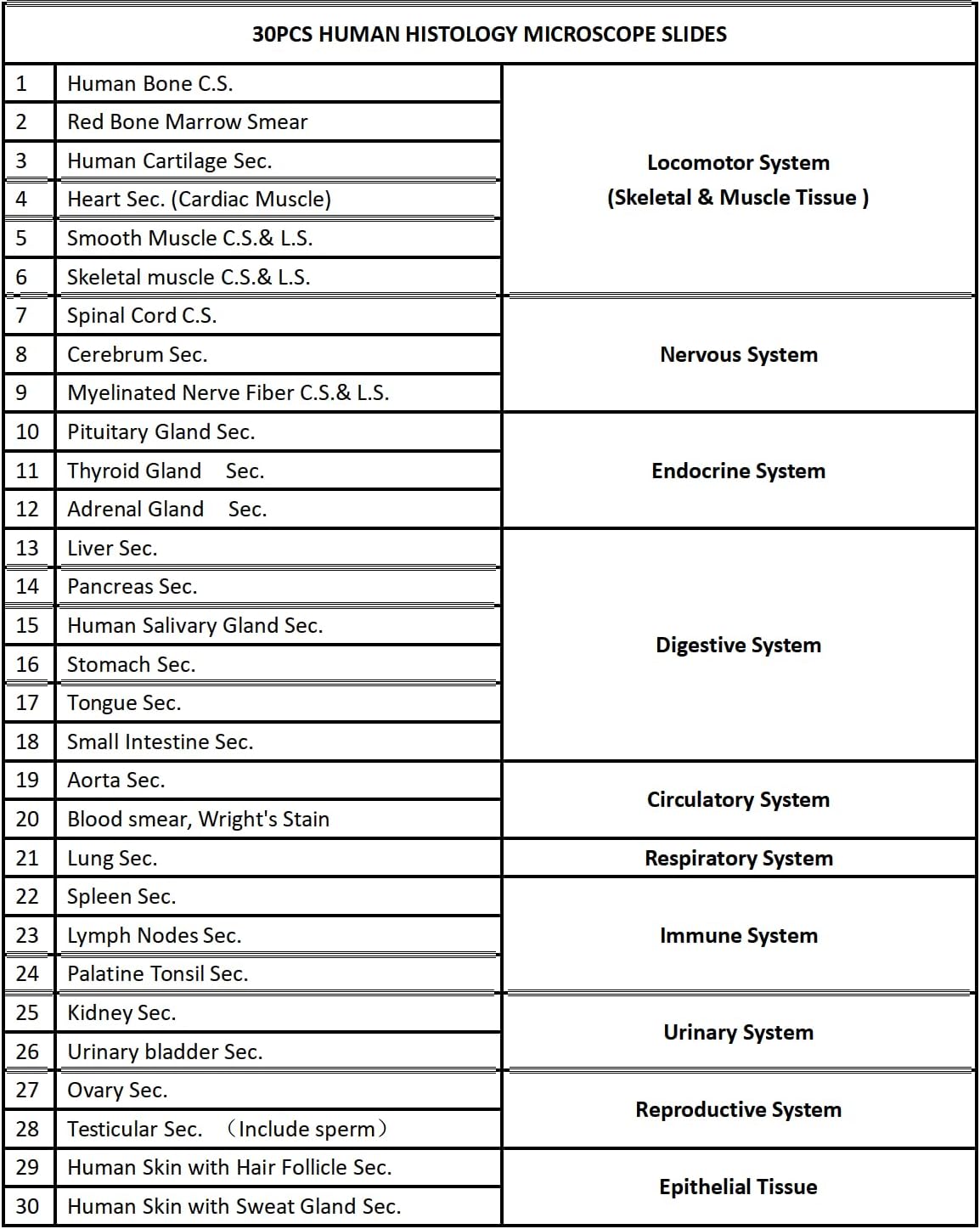 - 30pcs prepared Human Histology microscope slides, typical samples for life science course