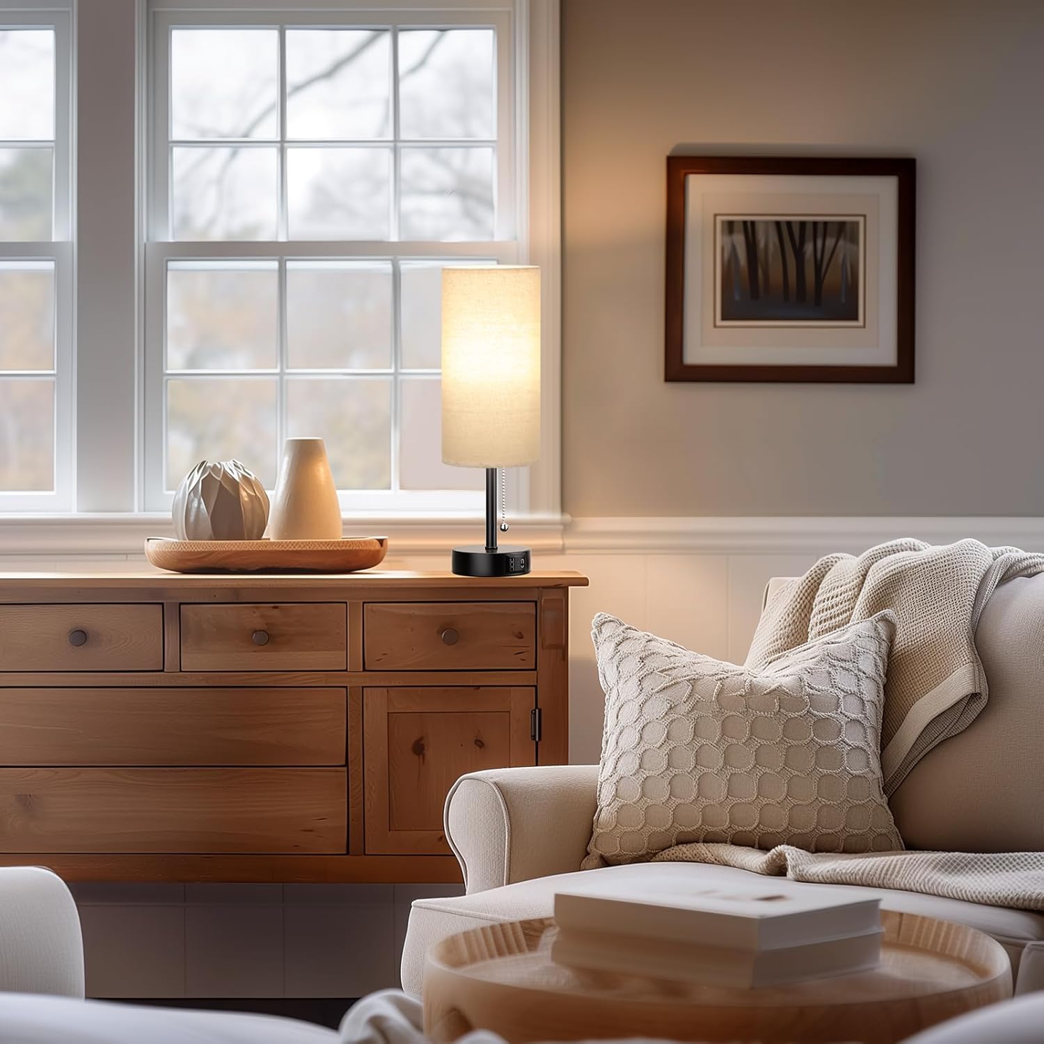 - 2. USB-A & USB-C Charging Ports - Power 2 devices at once side table lamp! With added feature of 2 usb sockets (5V/2.1A) on the bedside lamp, it get your phones, pad, laptops, humidifier, kindle, headsets, speaker, earbuds and other electronics fully charged all from the night stand lamp for room no matter if the bedroom nightstand lamp is on or off.