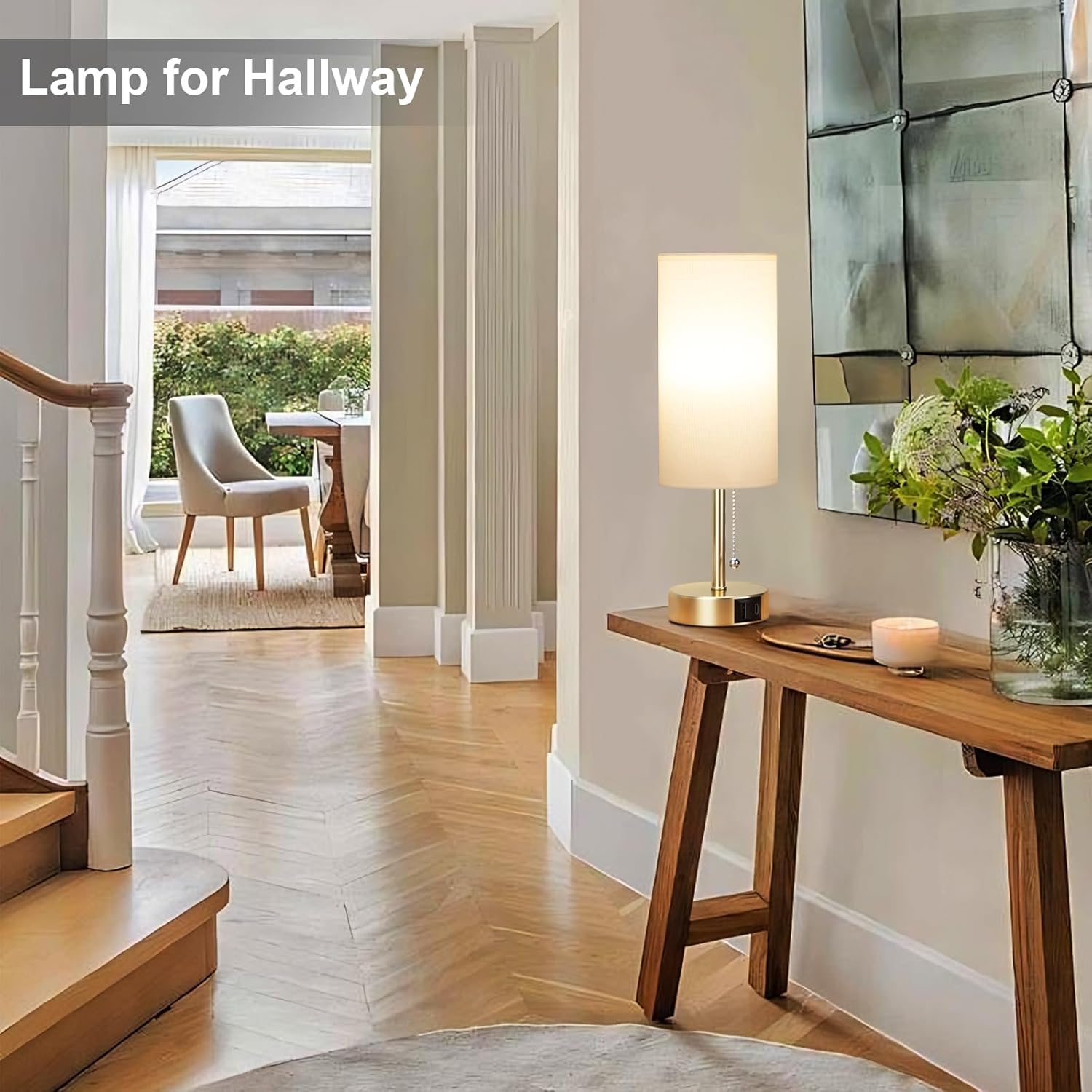 Gold Bedside Lamp for Bedroom Nightstand - Small Table Lamp with USB A + C Charging Port, 3 Color Temperatures Pull Chain Night Stand Light, Side Table Desk Reading Lamp for Living Room/Dorm Room