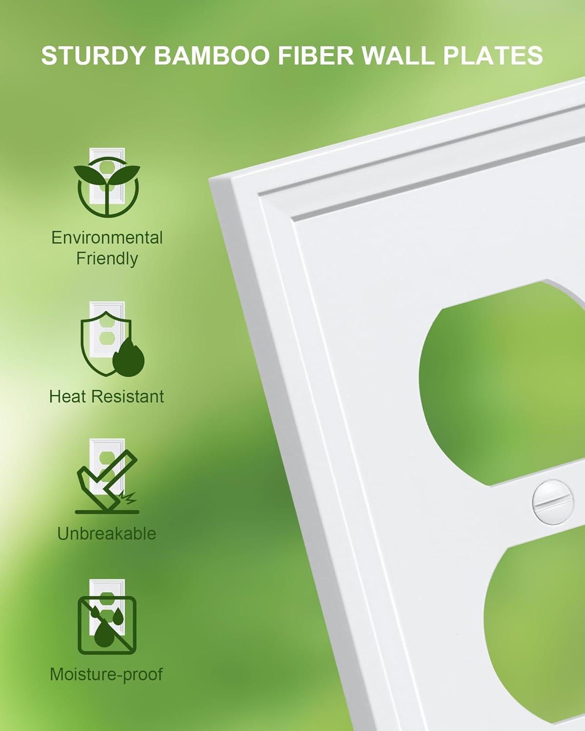 4-Pack Duplex Outlet Cover, Natural Bamboo Fiber Switch Plates and Outlet Covers, White Decorative Wall Plates for Electrical Outlets, 1 Gang Receptacle Cover, Corrosion Resistant