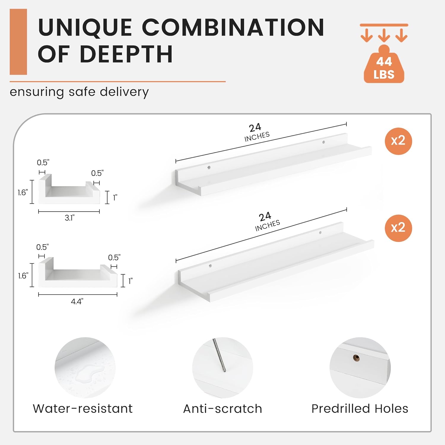 • 【Easy to Install】FLYJOE picture ledge shelves are quick and easy to install! Each set comes with pre-drilled holes and all necessary hardware, including a mini level for perfect alignment. With simple instructions, you can have your shelves up in minutes, allowing you to start decorating right away