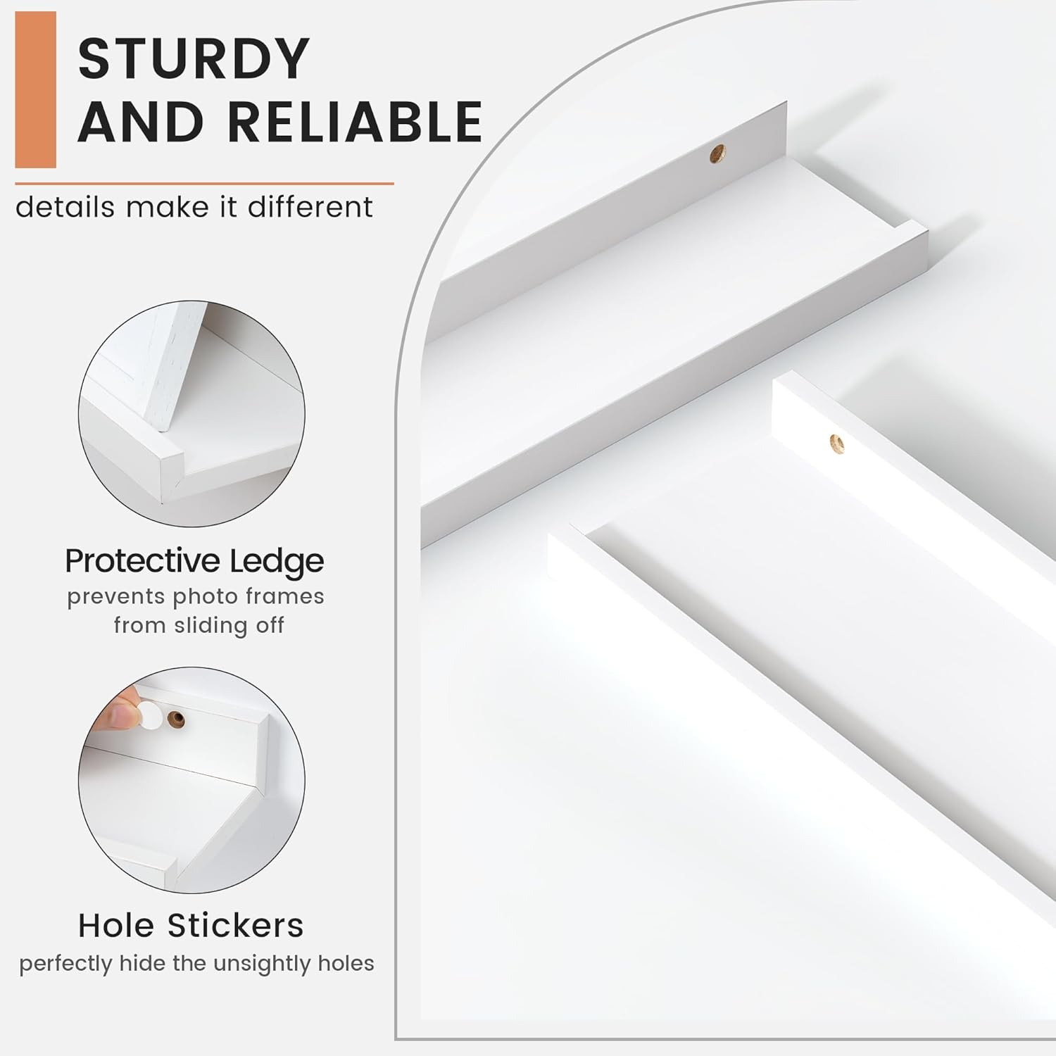 • 【Versatile and Multi-Functional】These shelves aren’t just for photos! FLYJOE ledge shelves can be creatively used as kids' bookshelves, display shelves for collectibles, spice racks in the kitchen, or even over-the-toilet storage in the bathroom. Their adaptability makes them a practical choice for any room in your home